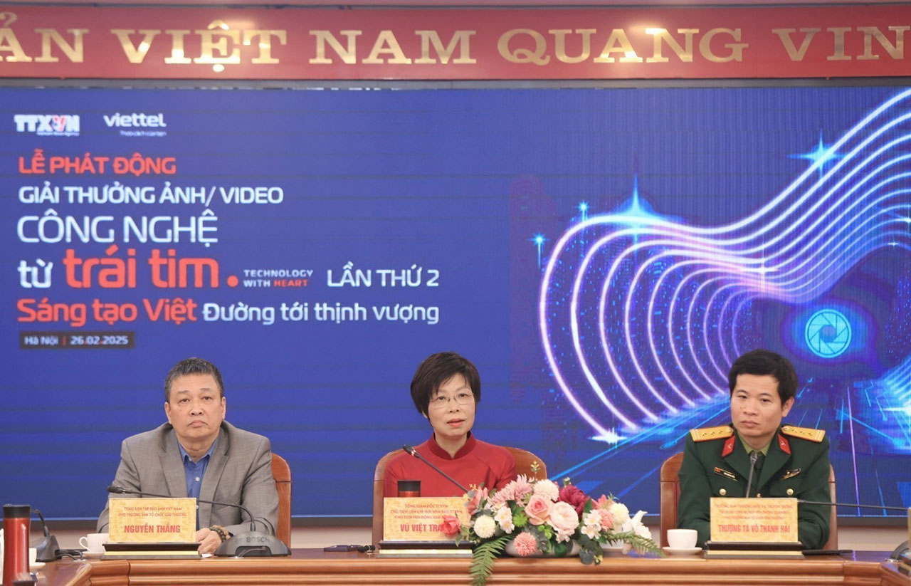 “Sáng tạo Việt - Đường tới thịnh vượng” là chủ đề Giải thưởng ảnh và video Công nghệ từ trái tim - Technology with heart lần thứ 2 do Thông tấn xã Việt Nam (TTXVN) và Tập đoàn Công nghiệp - Viễn thông Quân đội (Viettel) phát động ngày 26/2, tại Trung tâm Thông tấn quốc gia, Hà Nội.