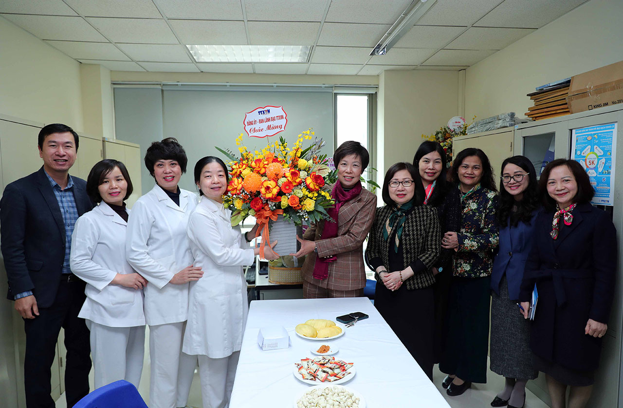 Sự kiện và kỷ niệmTin trong ngành Chúc mừng Ngày Thầy thuốc Việt Nam 27/2 Thứ năm, 27/02/2025 14:23 Nhân kỷ niệm 70 năm Ngày Thầy thuốc Việt Nam (27/2/1955-27/2/2025), ngày 26/2, tại Hà Nội, Bí thư Đảng ủy, Tổng giám đốc Thông tấn xã Việt Nam (TTXVN) Vũ Việt Trang đã đến thăm và chúc mừng Bộ Y tế. Tổng giám đốc TTXVN Vũ Việt Trang tặng quà chúc mừng các thế hệ thầy thuốc, lãnh đạo và toàn thể cán bộ, công chức, viên chức, người lao động của Bộ Y tế và ngành Y tế nhân Ngày Thầy thuốc Việt Nam, ngày 26/2 Đến thăm Bộ Y tế, thay mặt Đảng ủy, Ban lãnh đạo TTXVN, Tổng giám đốc Vũ Việt Trang gửi tới các thế hệ thầy thuốc, lãnh đạo và toàn thể cán bộ, công chức, viên chức, người lao động của ngành Y tế lời chúc mừng sức khỏe, hạnh phúc và thành công trong sự nghiệp cao cả của mình. Đảng ủy, Ban lãnh đạo TTXVN chúc mừng tập thể viên chức Tổ Y tế, Văn phòng TTXVN nhân Ngày Thầy thuốc Việt Nam, ngày 27/2 Nhân dịp này, ngày 27/2, Đảng ủy, Ban lãnh đạo TTXVN đã chúc mừng tập thể viên chức Tổ Y tế, Văn phòng TTXVN nhân Ngày Thầy thuốc Việt Nam./. Nội san Thông tấn