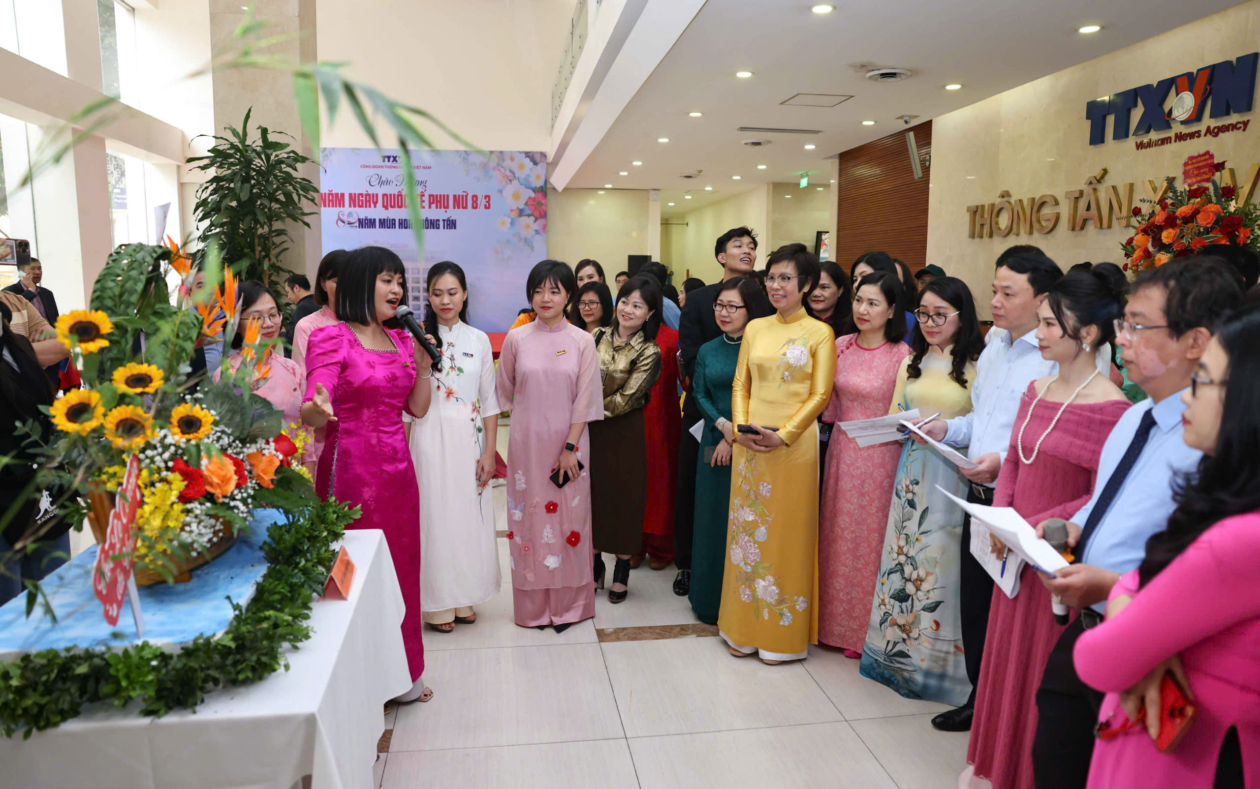 * Nhân dịp này, thực hiện chỉ đạo của Công đoàn Viên chức Việt Nam về tổ chức các hoạt động trong “Tuần lễ Áo dài” năm 2025, Ban Nữ công Công đoàn TTXVN đã phát động, khuyến khích nữ công đoàn viên mặc áo dài trong các ngày làm việc, từ ngày 3-7/3.