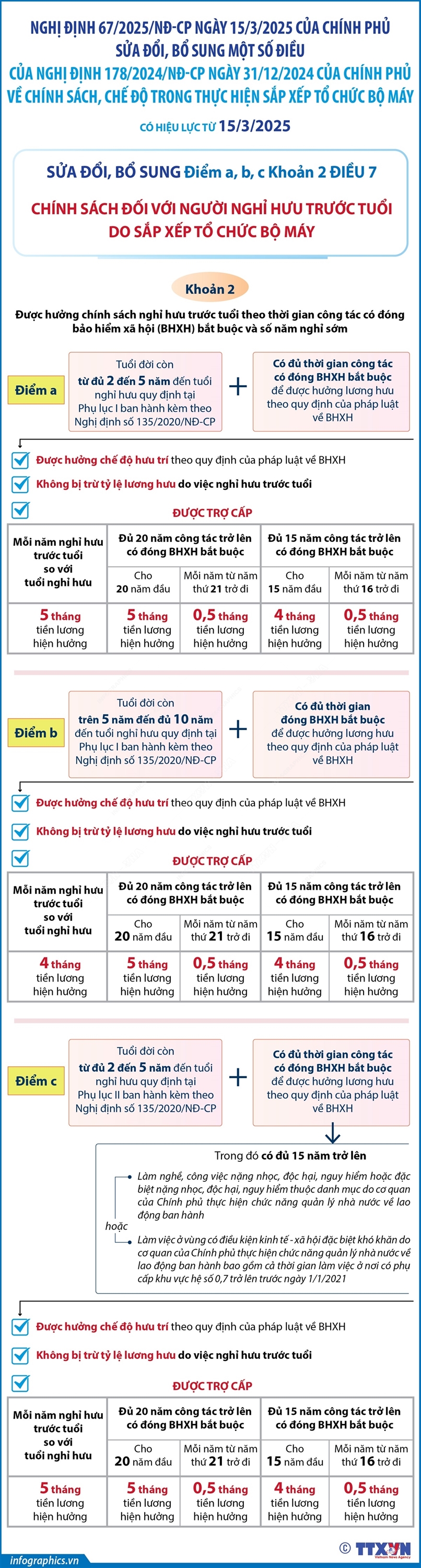 Chính phủ ban hành Nghị định 67/2025/NĐ-CP ngày 15/3/2025 sửa đổi, bổ sung một số điều của Nghị định số 178/2024/NĐ-CP ngày 31/12/2024 về chính sách, chế độ đối với cán bộ, công chức, viên chức, người lao động và lực lượng vũ trang trong thực hiện sắp xếp tổ chức bộ máy của hệ thống chính trị.