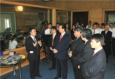 | Tổng giám đốc TTXVN Vũ Việt Trang trao hạng mục “Chiến tích thể thao của năm” cho Đội tuyển bóng chuyền nữ Việt Nam, tại lễ trao Giải Cống hiến, tháng 3/2024 |