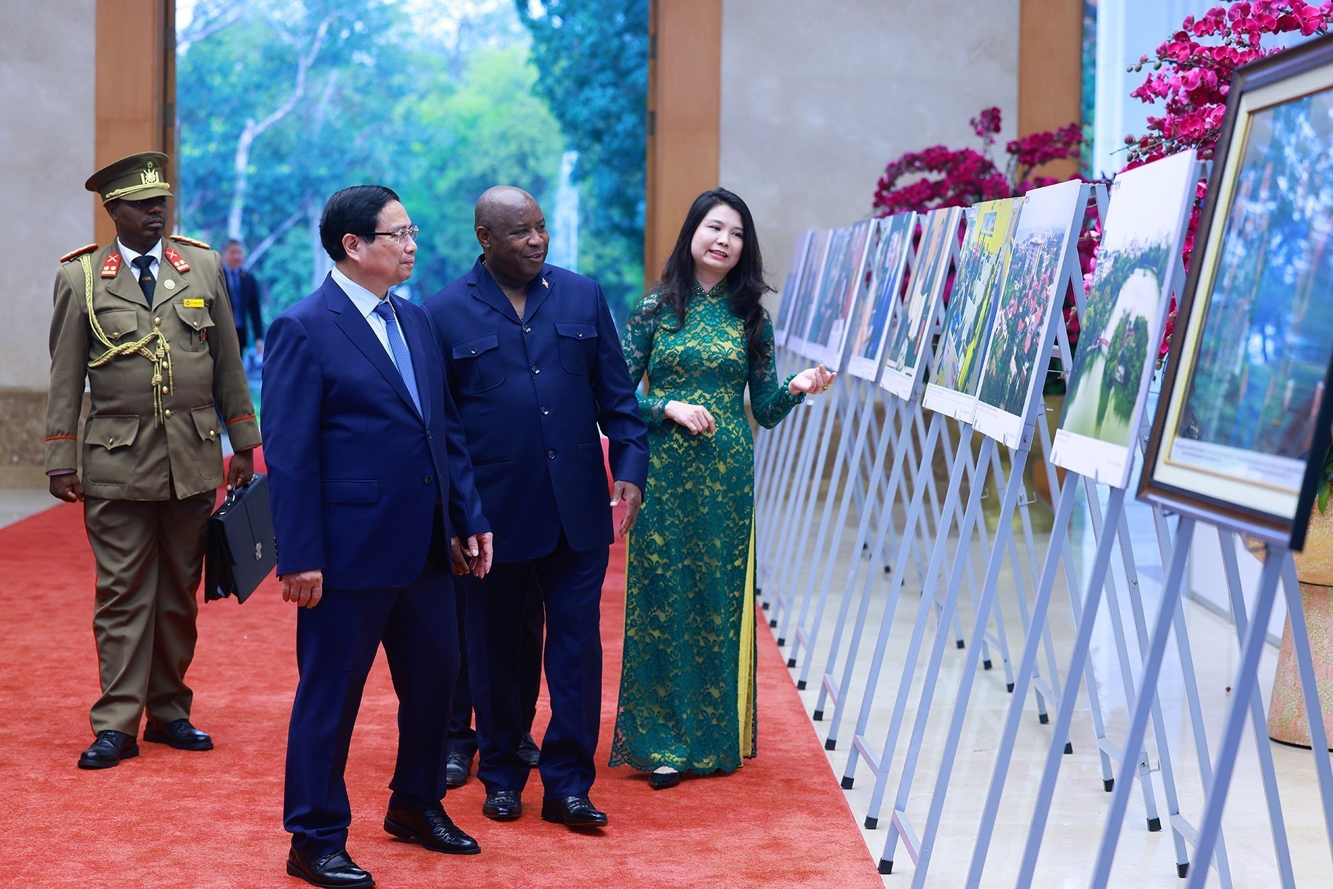 Sự kiện và kỷ niệmTin trong ngành Trưng bày ảnh quan hệ Việt Nam - Burundi Thứ sáu, 04/04/2025 14:27 Nhận lời mời của Chủ tịch nước Lương Cường và Phu nhân, Tổng thống nước Cộng hòa Burundi Evariste Ndayishimiye và Phu nhân đã đến Hà Nội, bắt đầu chuyến thăm chính thức Việt Nam từ ngày 3-6/4. Trong khuôn khổ chuyến thăm và làm việc, chiều 4/4, Thủ tướng Chính phủ Phạm Minh Chính và Tổng thống Evariste Ndayishimiye tham quan trưng bày ảnh về quan hệ hợp tác tốt đẹp giữa Việt Nam và Cộng hòa Burundi do Thông tấn xã Việt Nam (TTXVN) thực hiện./. Thủ tướng Phạm Minh Chính và Tổng thống Evariste Ndayishimiye tham quan trưng bày ảnh về quan hệ hợp tác giữa Việt Nam và Cộng hòa Burundi do TTXVN thực hiện Nội san Thông tấn