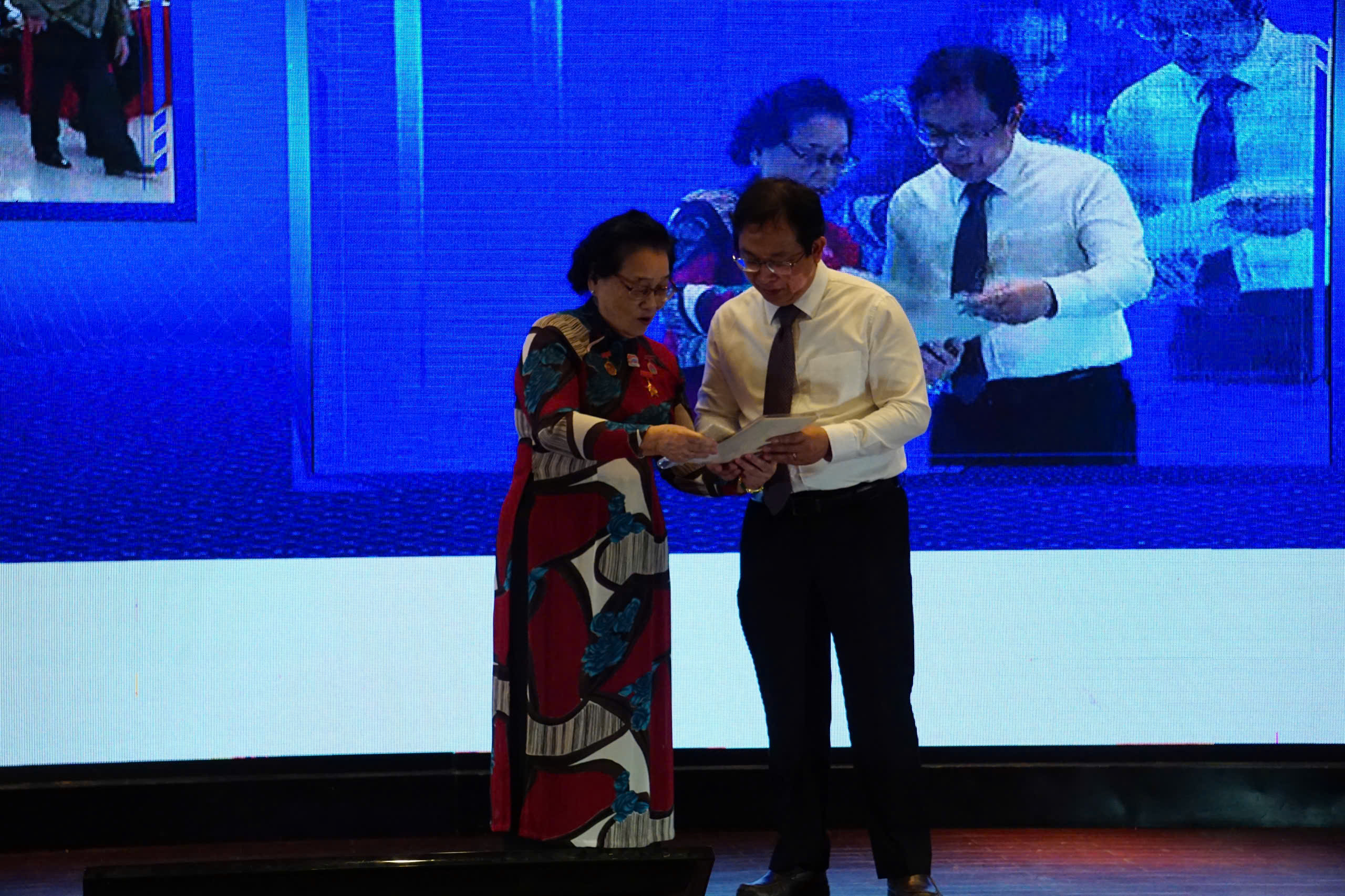 Tại đầu cầu Đà Nẵng, nguyên Trưởng Cơ quan thường trú tại tỉnh Quảng Ngãi Nguyễn Đăng Lâm trao tặng võng dù và 1 khẩu súng ngắn K54 mà ông từng sử dụng trong những năm kháng chiến chống Mỹ tại chiến trường Khu 5. Thân nhân liệt sỹ - điện báo viên TTXGP Đỗ Văn Thịnh trao tặng huy chương và lá thư ông gửi cho gia đình từ mặt trận Trị Thiên năm 1967.
