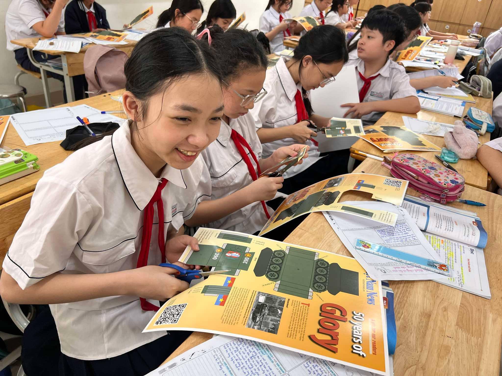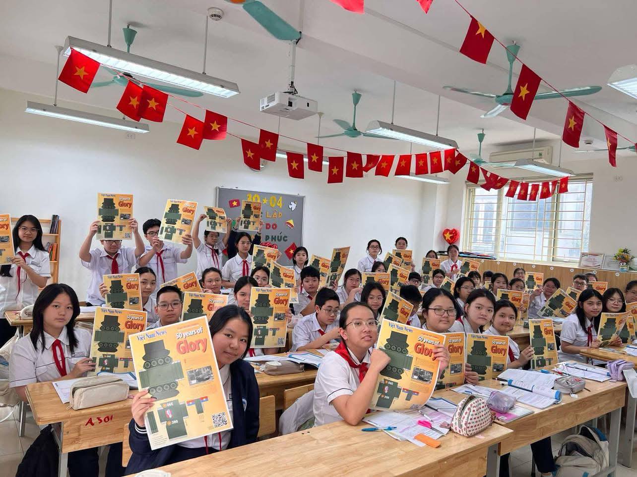 Niềm vui của các em học sinh lớp 6A2 trường THCS Ngô Sĩ Liên, Hà Nội khi có trong tay ấn phẩm đặc biệt của báo Việt Nam News and Law, ngày 28/4