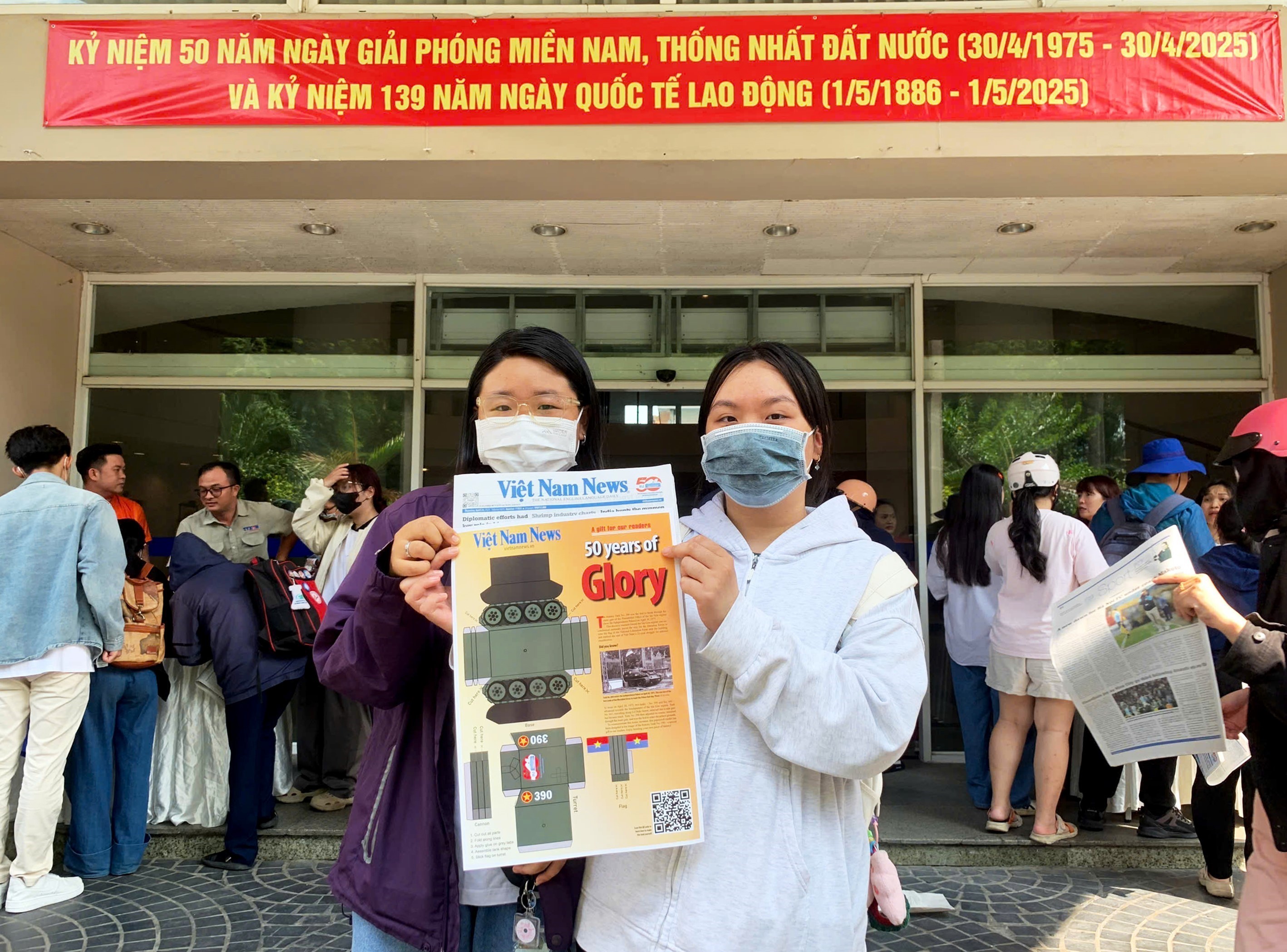 Là người sáng tạo ra ấn phẩm này, phóng viên báo Việt Nam News and Law Đồng Anh Đức cho biết: Đây không chỉ là món quà tri ân tới độc giả mà còn giới thiệu với thế hệ trẻ và bạn bè nước ngoài một biểu tượng lịch sử của ngày giải phóng miền Nam, thống nhất đất nước, góp phần giáo dục truyền thống yêu nước, khơi dậy niềm tự hào dân tộc trong mỗi người dân Việt Nam./.