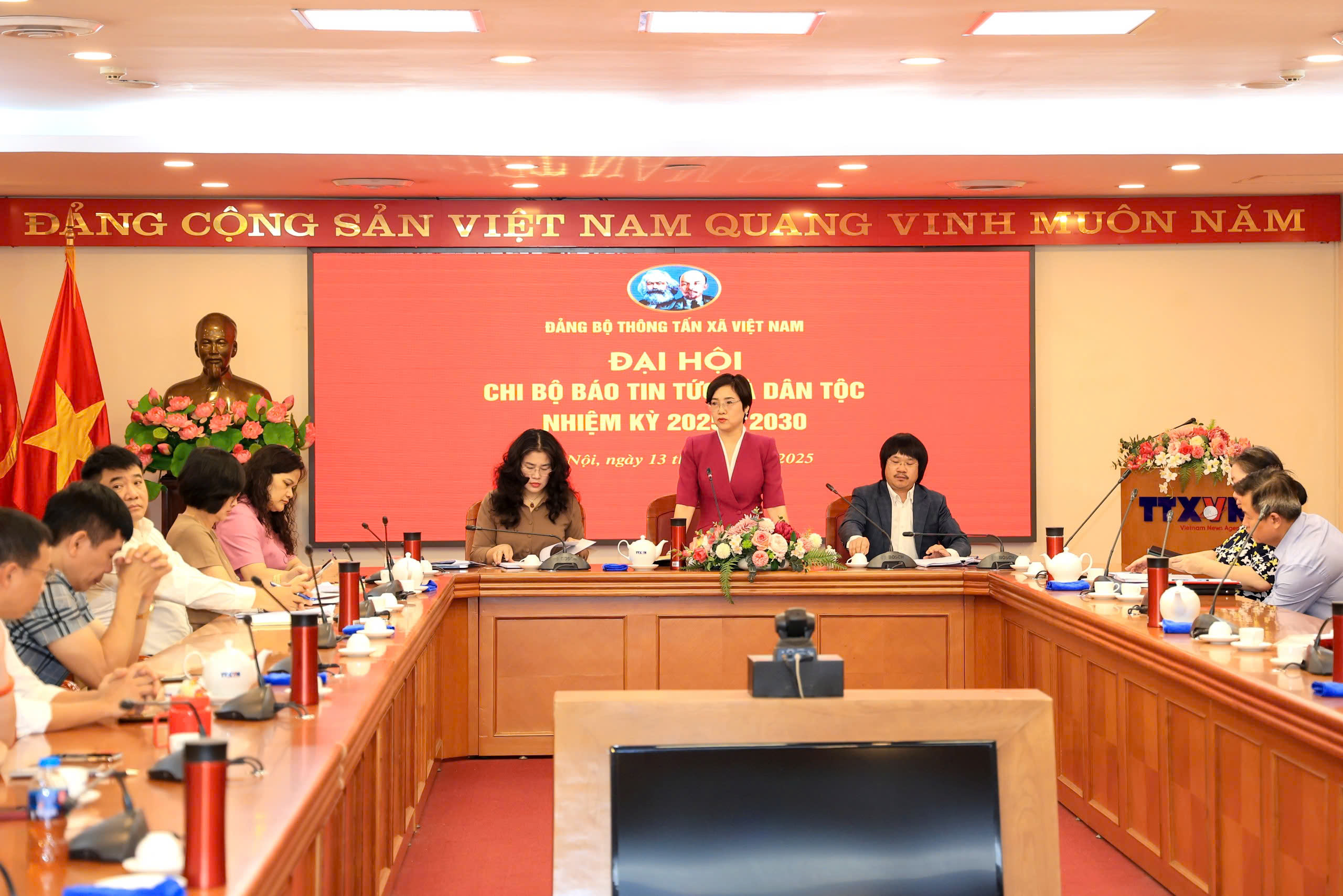 Là tổ chức đảng ở đơn vị thực hiện hợp nhất sau sắp xếp tổ chức bộ máy, nhận quyết định nâng cấp thành Chi bộ cơ sở từ tháng 4/2025, Chi bộ báo Tin tức và Dân tộc đã tiến hành Đại hội với hai nội dung gồm: Tổng kết việc thực hiện nghị quyết đại hội chi bộ nhiệm kỳ 2022-2025 và xác định phương hướng, mục tiêu, nhiệm vụ, giải pháp nhiệm kỳ 2025-2030; thảo luận, đóng góp ý kiến vào dự thảo các văn kiện Đại hội XIV của Đảng và văn kiện Đại hội Đảng bộ TTXVN nhiệm kỳ 2025-2030. Theo quy định đối với đơn vị hợp nhất, Đại hội không bầu cấp ủy nhiệm kỳ 2025-2030 và đoàn đại biểu dự Đại hội Đảng bộ TTXVN nhiệm kỳ 2025-2030.