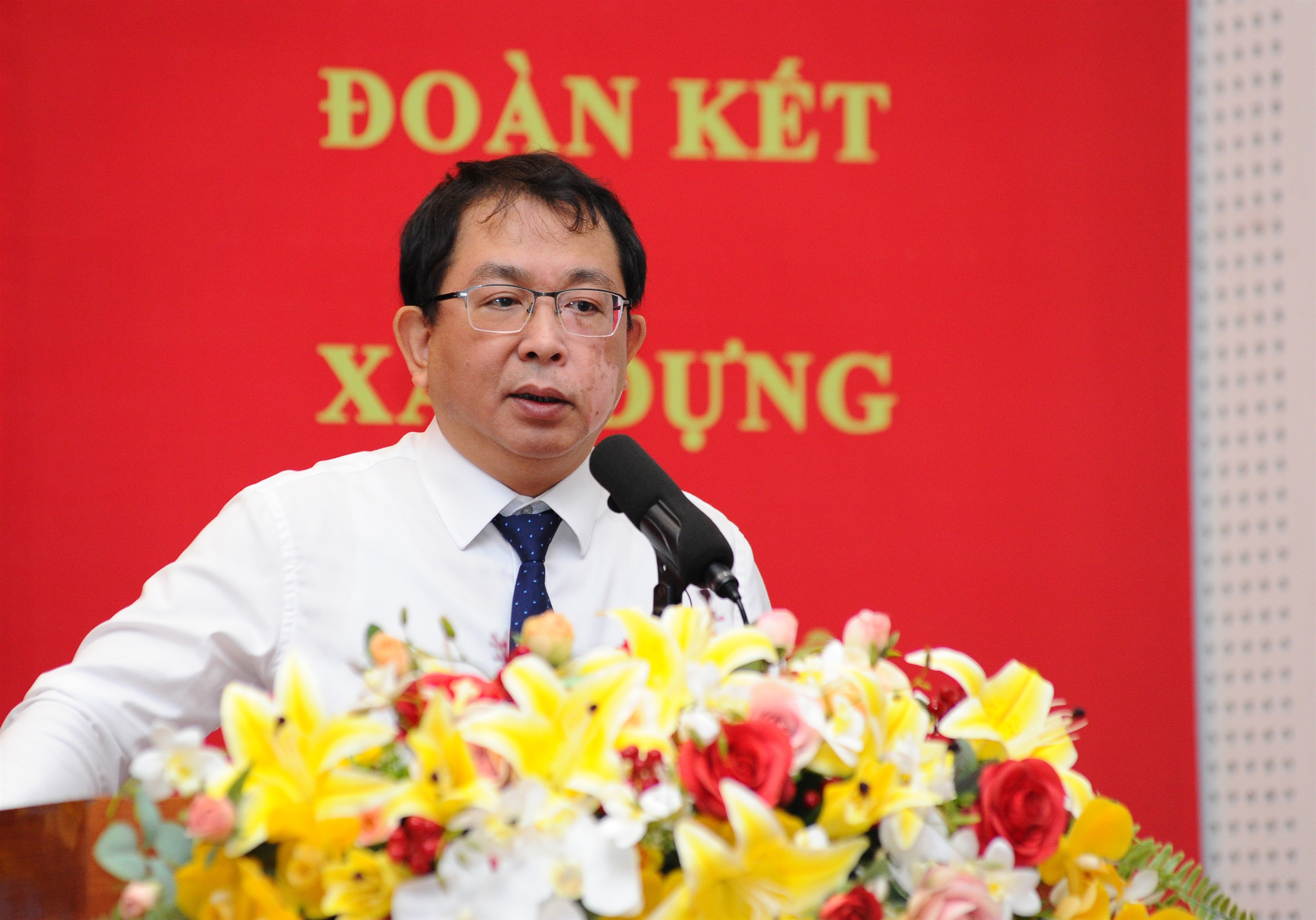| Đồng chí Nguyễn Tuấn Hùng, Phó bí thư Thường trực Đảng ủy, Phó tổng giám đốc TTXVN phát biểu tại Đại hội Đảng bộ Trung tâm Thông tin TTXVN khu vực phía Nam nhiệm kỳ 2025-2030, ngày 17/5 |