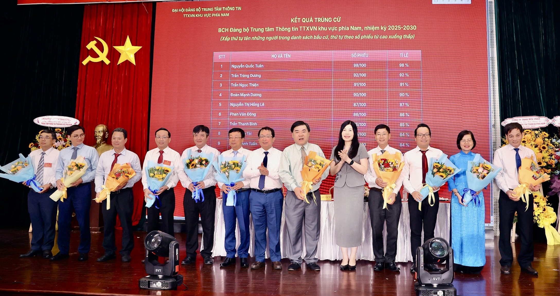 Đại hội đã bầu Ban chấp hành Đảng bộ cơ sở gồm 11 đồng chí và bầu đại biểu dự Đại hội đại biểu Đảng bộ TTXVN lần thứ XXVII, nhiệm kỳ 2025-2030 gồm 15 đại biểu chính thức và 2 đại biểu dự khuyết, đảm bảo các quy định về bầu cử trong Đảng. Tại phiên họp thứ nhất của Ban chấp hành Đảng bộ, các đồng chí Ủy viên đã bầu Ban Thường vụ Đảng ủy gồm 3 đồng chí, trong đó đồng chí Nguyễn Quốc Tuấn, Giám đốc, tái đắc cử chức vụ Bí thư Đảng ủy Trung tâm Thông tin TTXVN khu vực phía Nam.