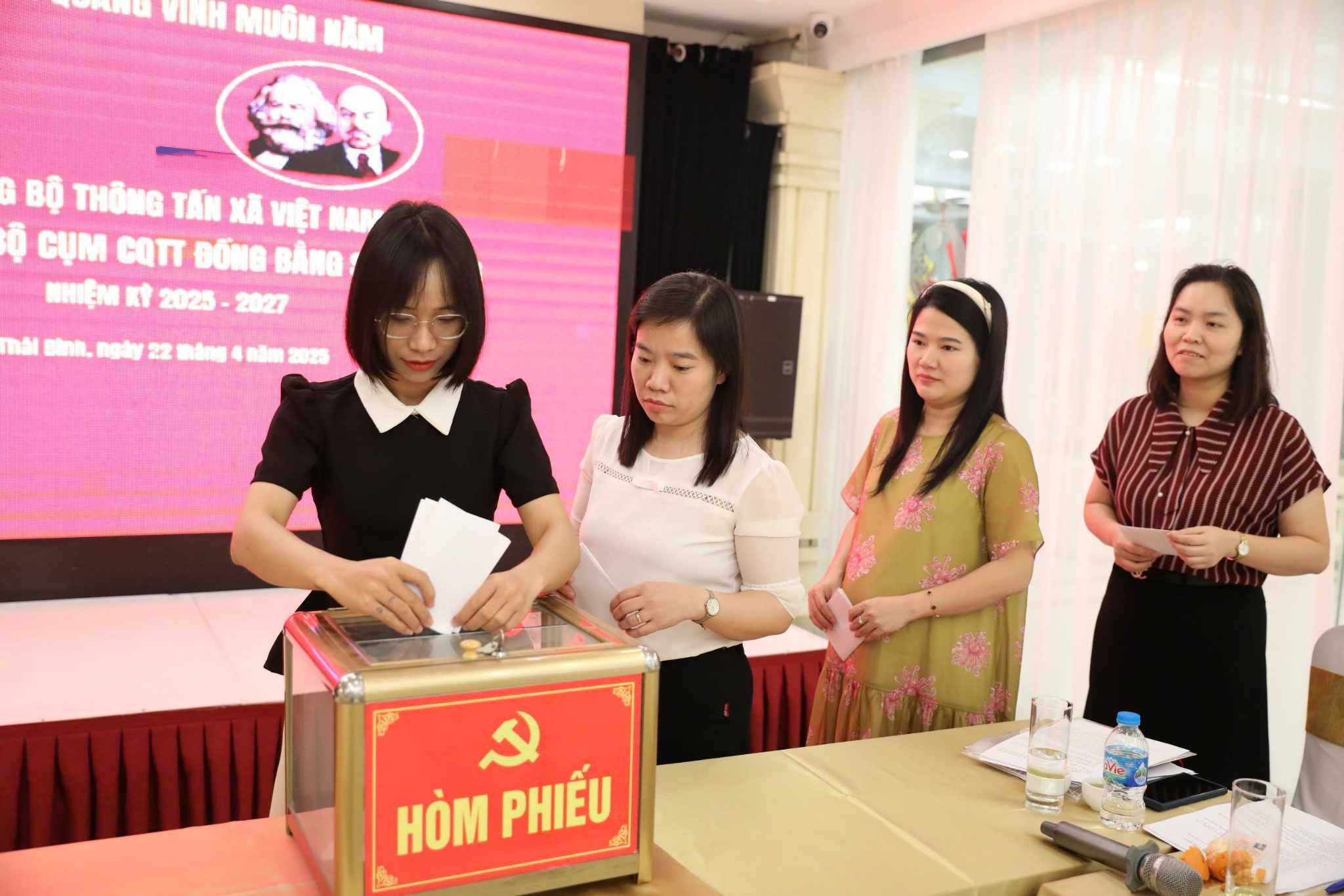 | Bỏ phiếu bầu Ban chấp hành Chi bộ cụm CQTT Đồng bằng sông Hồng nhiệm kỳ 2025-2027, ngày 22/4 |