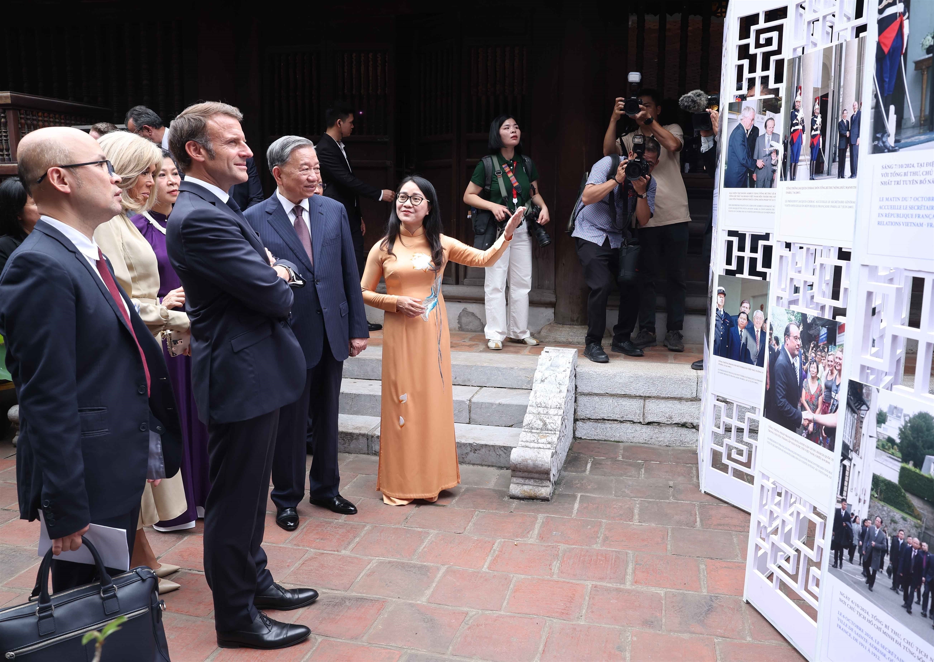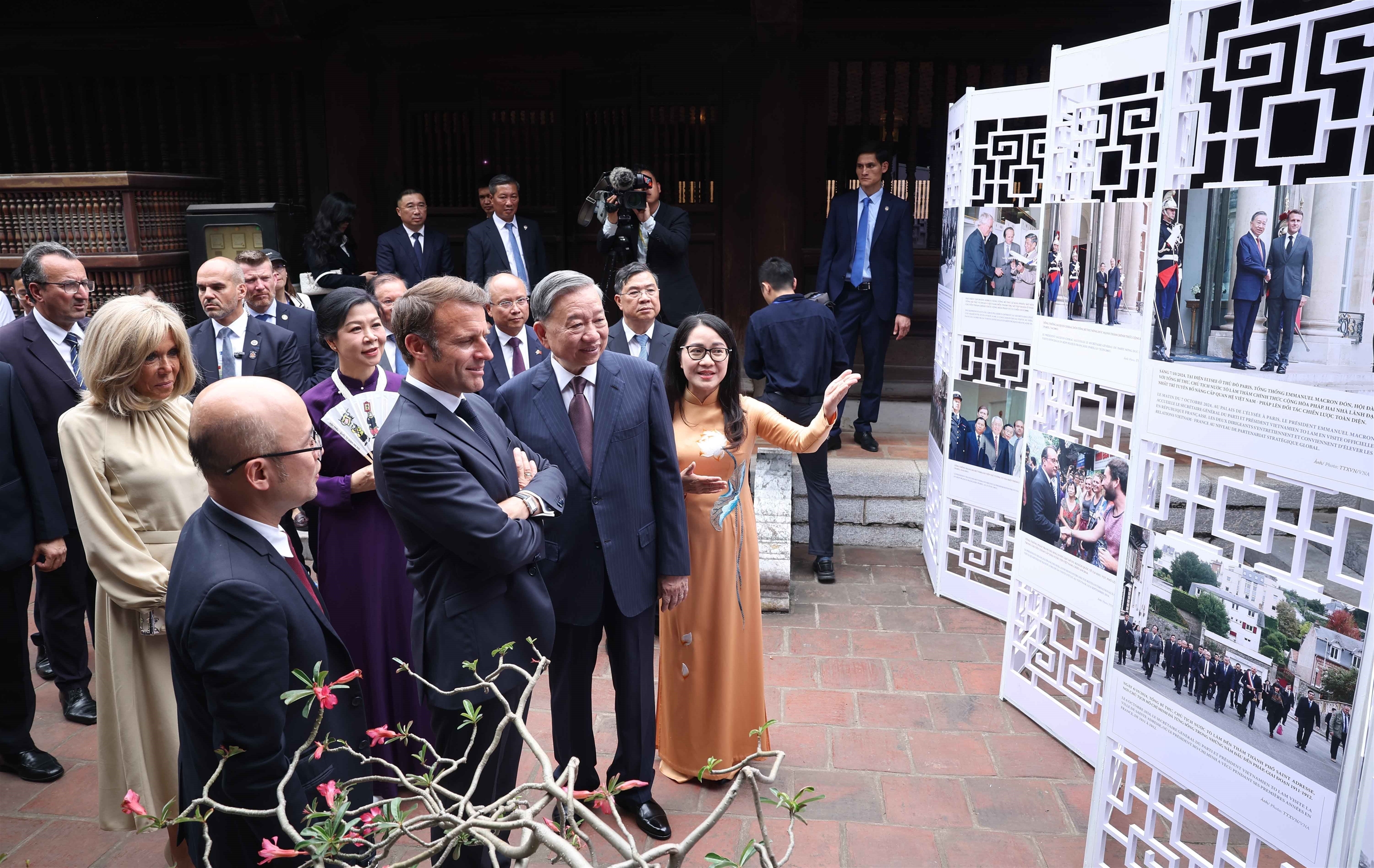 Sự kiện và kỷ niệmTin trong ngành Tổng Bí thư Tô Lâm và Tổng thống Pháp tham quan trưng bày ảnh quan hệ Việt Nam - Pháp Thứ hai, 26/05/2025 11:43 Nhận lời mời của Chủ tịch nước Lương Cường, Tổng thống Cộng hòa Pháp Emmanuel Macron và Phu nhân đã đến Thủ đô Hà Nội, bắt đầu chuyến thăm cấp Nhà nước tới Việt Nam từ ngày 25-27/5. Tổng Bí thư Tô Lâm và Phu nhân cùng Tổng thống Pháp Emmanuel Macron và Phu nhân tham quan trưng bày ảnh về quan hệ Việt Nam - Pháp do TTXVN thực hiện, ngày 26/5 Ngày 26/5, trong chương trình đến thăm Văn Miếu - Quốc Tử Giám, Tổng Bí Thư Tô Lâm và Phu nhân cùng Tổng thống Pháp Emmanuel Macron và Phu nhân đã tham quan trưng bày ảnh những dấu mốc tiêu biểu của quan hệ Việt Nam - Pháp, do Thông tấn xã Việt Nam (TTXVN) thực hiện./. Tổng Bí thư Tô Lâm và Phu nhân cùng Tổng thống Pháp Emmanuel Macron và Phu nhân tham quan trưng bày ảnh về quan hệ Việt Nam - Pháp do TTXVN thực hiện, ngày 26/5 Nội san Thông tấn/TTXVN