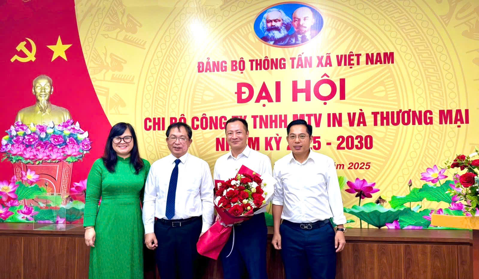 Phó bí thư Thường trực Đảng ủy, Phó tổng giám đốc TTXVN Nguyễn Tuấn Hùng chúc mừng Ban chấp hành Chi bộ Công ty TNHH MTV In và Thương mại nhiệm kỳ 2025-2030, ngày 24/5