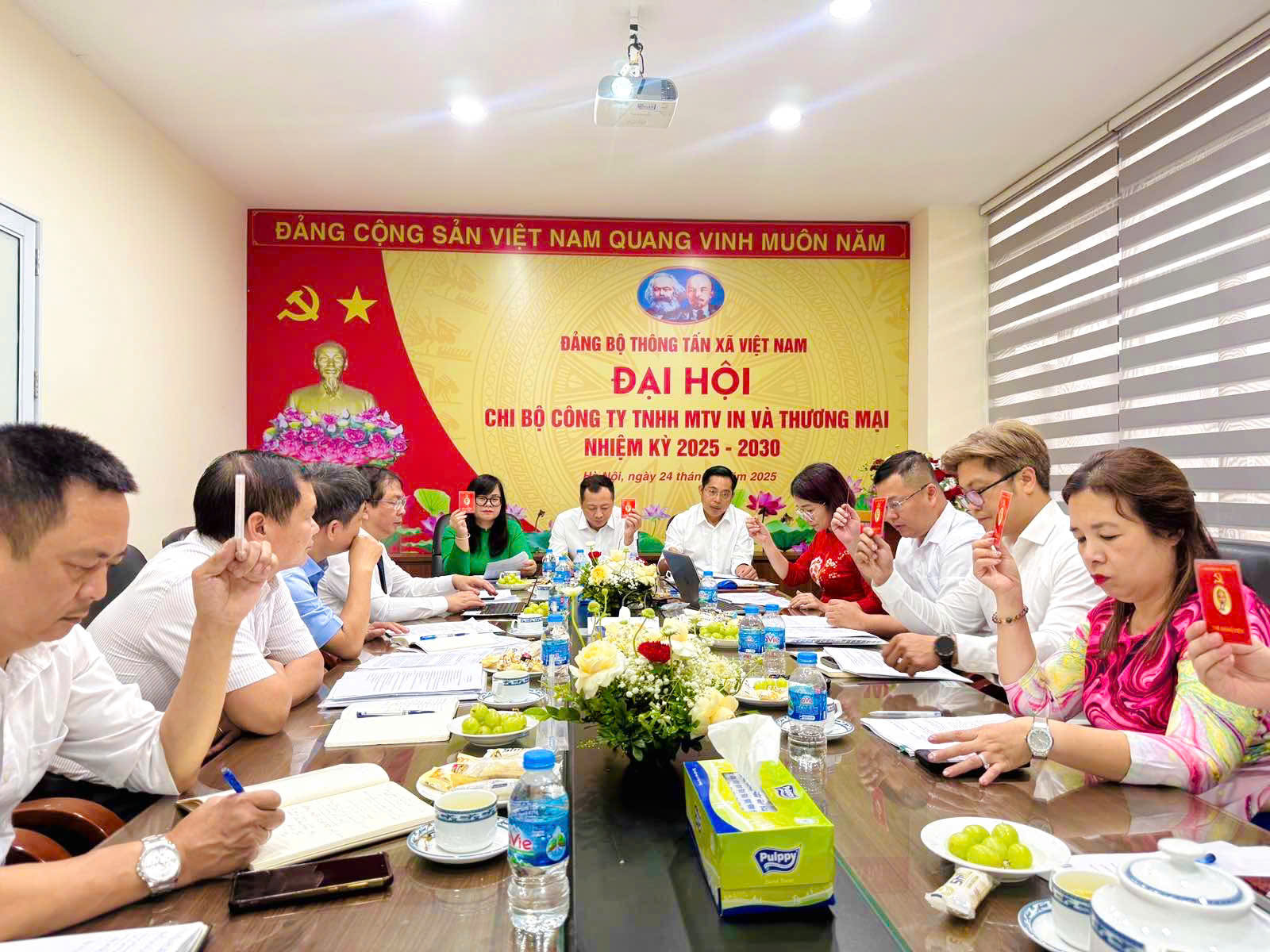 Biểu quyết thông qua Nghị quyết Đại hội Chi bộ Công ty TNHH MTV In và Thương mại nhiệm kỳ 2025-2030, ngày 24/5