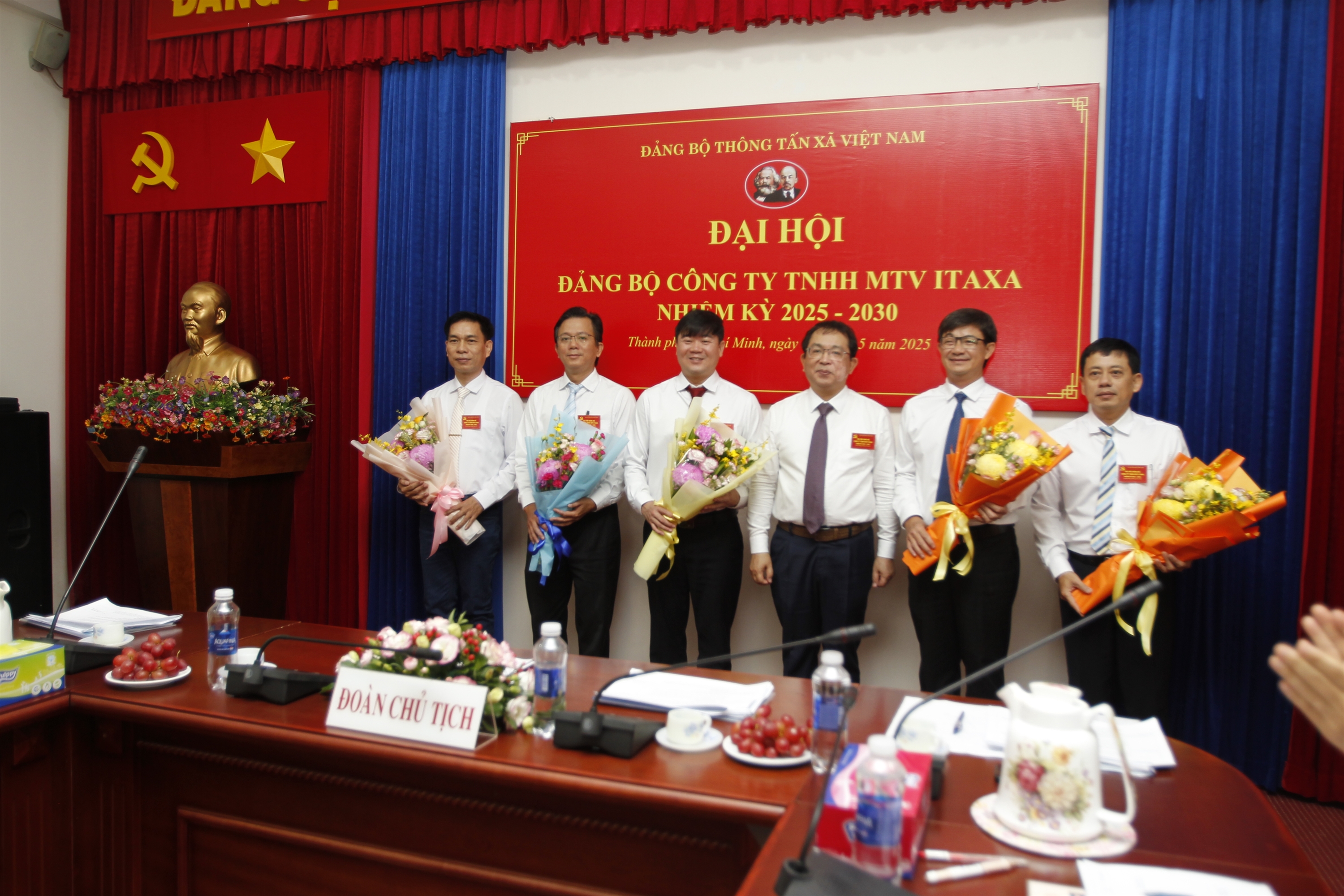 | Phó bí thư Thường trực Đảng ủy, Phó tổng giám đốc TTXVN Nguyễn Tuấn Hùng chúc mừng Ban chấp hành Đảng bộ Công ty ITAXA nhiệm kỳ 2025-2030, ngày 28/5 |