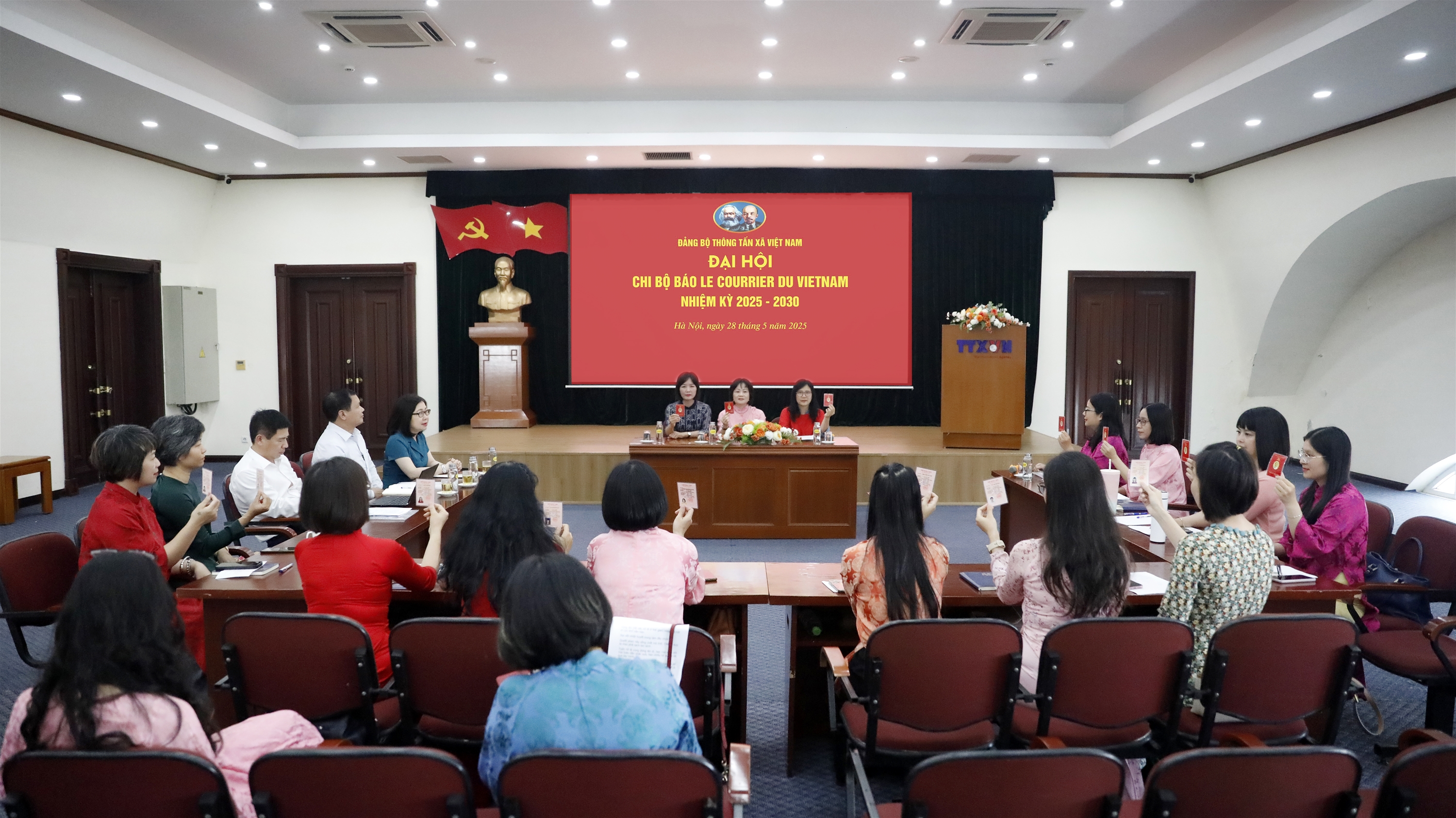 | Biểu quyết thông qua Nghị quyết Đại hội Chi bộ báo Le Courrier du Vietnam nhiệm kỳ 2025-2030, ngày 28/5 |