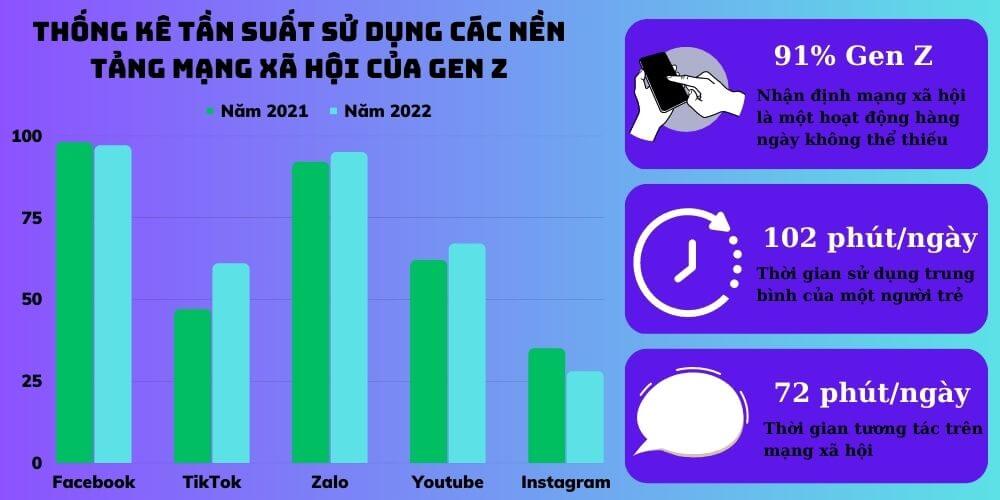 | Thống kê tần suất sử dụng các nền tảng mạng xã hội của Gen Z |