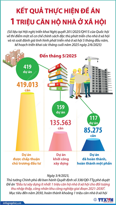 Tin cùng chuyên mục Hà Nội hỗ trợ gần 93 tỷ đồng xây mới, cải tạo, sửa chữa nhà ở cho người có công06/06/2025 09:46Hà Nội (TTXVN 6/6) Ủy ban nhân dân thành phố Hà Nội vừa ban hành Quyết định số 2672/QĐ-UBND ngày 27/5/2025 về việc phê duyệt Đề án hỗ trợ xây dựng mới hoặc cải tạo, sửa chữa nhà ở đối với người có công với cách mạng, thân nhân liệt sĩ... Sửa Pháp lệnh Dân số: Vợ chồng tự quyết định số con và thời gian sinh con04/06/2025 10:22Hà Nội (TTXVN 3/6) Chiều 3/6/2025, tại Phiên họp thứ 46, Ủy ban Thường vụ Quốc hội khóa XV đã thông qua Pháp lệnh sửa đổi Điều 10 của Pháp lệnh Dân số số 06/2003/PL-UBTVQH11 đã được sửa đổi, bổ sung theo Pháp lệnh số 08/2008/PL-UBTVQH12. Trình bày tờ trình,... Công nhận tỉnh Ninh Bình hoàn thành nhiệm vụ xây dựng nông thôn mới năm 202404/06/2025 10:20Hà Nội (TTXVN 3/6) Tại Quyết định số 1058/QĐ-TTg ngày 31/5/2025, Thủ tướng Chính phủ công nhận tỉnh Ninh Bình hoàn thành nhiệm vụ xây dựng nông thôn mới năm 2024. Từ năm 2011, tỉnh Ninh Bình đã triển khai Chương trình mục tiêu quốc gia xây dựng... Kết quả thực hiện Đề án 1 triệu căn hộ nhà ở xã hội04/06/2025 10:19Hà Nội (TTXVN 3/6) Ngày 2/6/2025, Thủ tướng Phạm Minh Chính chủ trì Hội nghị triển khai Nghị quyết 201/2025/QH15 của Quốc hội về thí điểm một số cơ chế chính sách đặc thù phát triển cho nhà ở xã hội và rà soát đánh giá tình... Dự kiến danh sách 11 cơ sở đào tạo nguồn nhân lực phục vụ phát triển điện hạt nhân đến năm 203504/06/2025 10:16Hà Nội (TTXVN 3/6) Theo Đề án "Đào tạo, bồi dưỡng nguồn nhân lực phục vụ phát triển điện hạt nhân đến năm 2035", dự kiến có 11 cơ sở đào tạo nguồn nhân lực sẽ đào tạo, bồi dưỡng nguồn nhân lực trong nước và nước ngoài đáp ứng cho nhu cầu phục vụ... Điều kiện về nhà ở để được hưởng chính sách hỗ trợ về nhà ở xã hội04/06/2025 09:44Hà Nội (TTXVN 4/6) Nghị quyết số 201/2025/QH15 thí điểm về một số cơ chế, chính sách đặc thù phát triển nhà ở xã hội được thực hiện trong 5 năm, kể từ ngày 1/6/2025. Nghị quyết quy định điều kiện về nhà ở để được hưởng chính sách hỗ trợ về nhà ở...