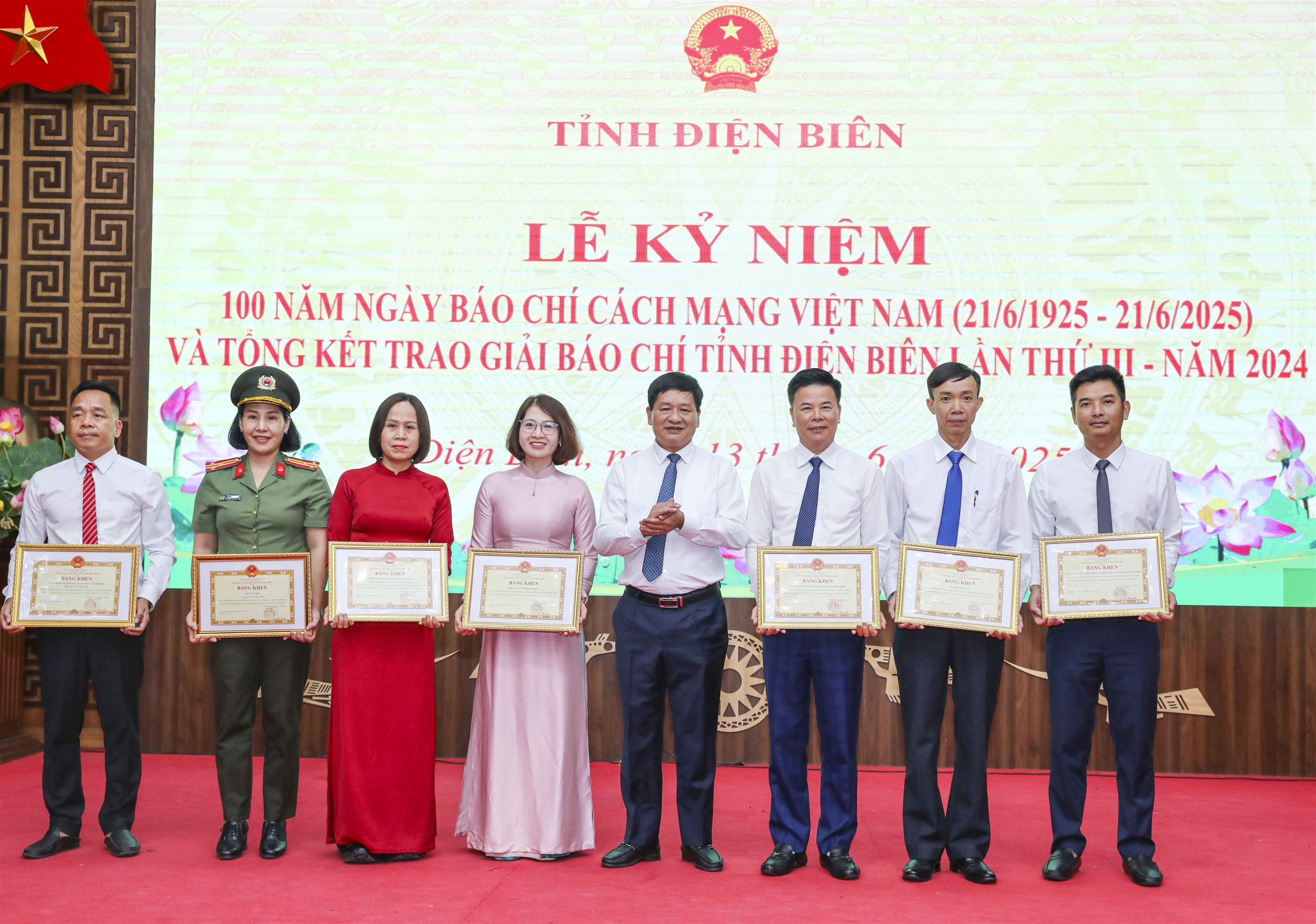 Ngày 13/6, tại Lễ kỷ niệm 100 năm Ngày Báo chí cách mạng Việt Nam (21/6/1925-21/6/2025), Lễ trao Giải báo chí tỉnh Điện Biên năm 2024 và trưng bày ảnh tư liệu về 100 năm Báo chí cách mạng Việt Nam, Thông tấn xã Việt Nam (TTXVN) được trao 1 giải Nhất và 1 giải Khuyến khích.