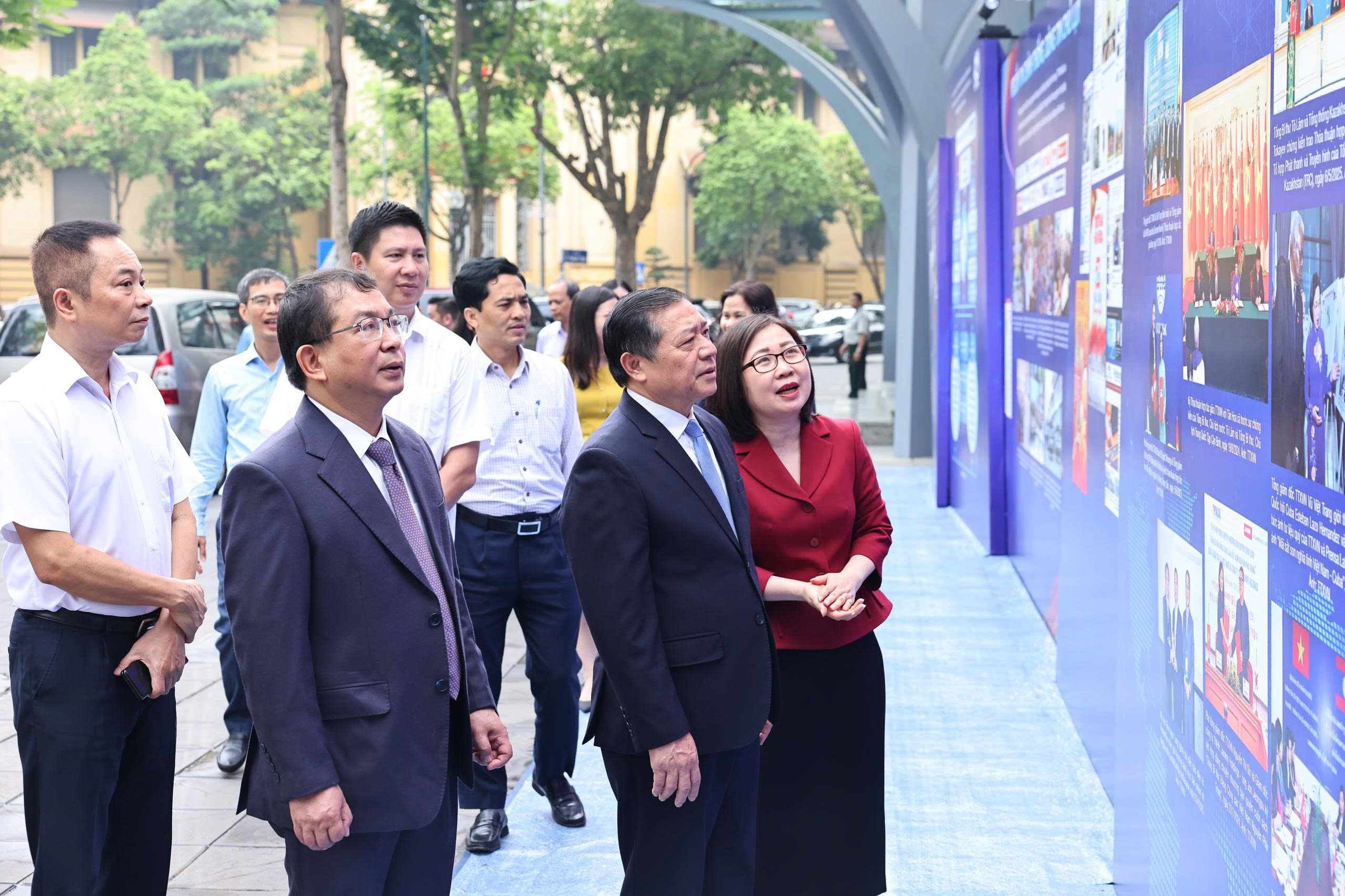 | Phó trưởng ban Thường trực Ban Tuyên giáo và Dân vận Trung ương Lại Xuân Môn tham quan trưng bày ảnh 100 năm Báo chí cách mạng Việt Nam tại Trung tâm thông tấn quốc gia Hà Nội, ngày 17/6 |