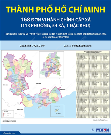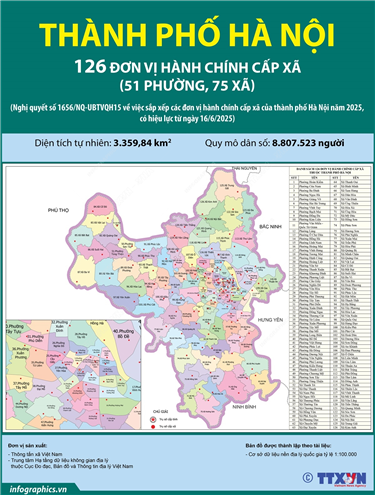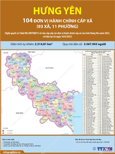 Tin cùng chuyên mục 54 đơn vị hành chính cấp xã của tỉnh Quảng Ninh năm 202519/06/2025 10:37Hà Nội (TTXVN 18/6) Ngày 16/6/2025, thay mặt Ủy ban Thường vụ Quốc hội, Chủ tịch Quốc hội Trần Thanh Mẫn ký Nghị quyết số 1679/NQ-UBTVQH15 về việc sắp xếp các đơn vị hành chính cấp xã của tỉnh Quảng Ninh năm 2025. Nghị quyết có hiệu lực từ 16/6/2025. Theo đó, sau khi sắp xếp,... 114 đơn vị hành chính cấp xã của thành phố Hải Phòng năm 202518/06/2025 10:53Hà Nội (TTXVN 17/6) Ngày 16/6/2025, thay mặt Ủy ban Thường vụ Quốc hội, Chủ tịch Quốc hội Trần Thanh Mẫn ký Nghị quyết số 1669/NQ-UBTVQH15 về việc sắp xếp các đơn vị hành chính cấp xã của thành phố Hải Phòng năm 2025. Nghị quyết có hiệu lực từ 16/6/2025. Theo đó, sau... 40 đơn vị hành chính cấp xã của thành phố Huế năm 202518/06/2025 10:52Hà Nội (TTXVN 16/6) Ngày 16/6/2025, thay mặt Ủy ban Thường vụ Quốc hội, Chủ tịch Quốc hội Trần Thanh Mẫn ký Nghị quyết số 1675/NQ-UBTVQH15 về việc sắp xếp các đơn vị hành chính cấp xã của thành phố Huế năm 2025. Nghị quyết có hiệu lực từ 16/6/2025. Theo đó, sau khi sắp... 104 đơn vị hành chính cấp xã của tỉnh Hưng Yên năm 202518/06/2025 10:51Hà Nội (TTXVN 16/6) Ngày 16/6/2025, thay mặt Ủy ban Thường vụ Quốc hội, Chủ tịch Quốc hội Trần Thanh Mẫn ký Nghị quyết số 1666/NQ-UBTVQH15 về việc sắp xếp các đơn vị hành chính cấp xã của tỉnh Hưng Yên năm 2025. Nghị quyết có hiệu lực từ 16/6/2025. Theo đó, sau khi sắp... 168 đơn vị hành chính cấp xã của Thành phố Hồ Chí Minh năm 202517/06/2025 10:05Hà Nội (TTXVN 16/6) Ngày 16/6/2025, thay mặt Ủy ban Thường vụ Quốc hội, Chủ tịch Quốc hội Trần Thanh Mẫn ký Nghị quyết số 1685/NQ-UBTVQH15 về việc sắp xếp các đơn vị hành chính cấp xã của Thành phố Hồ Chí Minh năm 2025. Nghị quyết có hiệu lực từ 16/6/2025. Theo đó, sau... 126 đơn vị hành chính cấp xã của thành phố Hà Nội năm 202517/06/2025 10:04Hà Nội (TTXVN 16/6) Ngày 16/6/2025, thay mặt Ủy ban Thường vụ Quốc hội, Chủ tịch Quốc hội Trần Thanh Mẫn ký Nghị quyết số 1656/NQ-UBTVQH15 về việc sắp xếp các đơn vị hành chính cấp xã của thành phố Hà Nội năm 2025. Nghị quyết có hiệu lực từ 16/6/2025. Theo đó, sau khi...