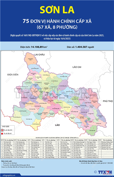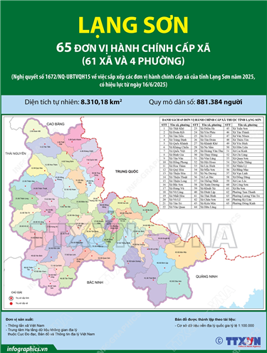 Tin cùng chuyên mục 92 đơn vị hành chính cấp xã của tỉnh Thái Nguyên năm 202523/06/2025 14:58Hà Nội (TTXVN 19/6) Ngày 16/6/2025, thay mặt Ủy ban Thường vụ Quốc hội, Chủ tịch Quốc hội Trần Thanh Mẫn ký Nghị quyết số 1683/NQ-UBTVQH15 về việc sắp xếp các đơn vị hành chính cấp xã của tỉnh Thái Nguyên năm 2025. Nghị quyết có hiệu lực từ 16/6/2025. Theo đó, sau khi... 135 đơn vị hành chính cấp xã của tỉnh Gia Lai năm 202523/06/2025 14:57Hà Nội (TTXVN 21/6) Ngày 16/6/2025, thay mặt Ủy ban Thường vụ Quốc hội, Chủ tịch Quốc hội Trần Thanh Mẫn ký Nghị quyết số 1664/NQ-UBTVQH15 về việc sắp xếp các đơn vị hành chính cấp xã của tỉnh Gia Lai năm 2025. Nghị quyết có hiệu lực từ 16/6/2025. Theo đó, sau khi sắp xếp,... 102 đơn vị hành chính cấp xã của tỉnh Đồng Tháp năm 202523/06/2025 14:56Hà Nội (TTXVN 21/6) Ngày 16/6/2025, thay mặt Ủy ban Thường vụ Quốc hội, Chủ tịch Quốc hội Trần Thanh Mẫn ký Nghị quyết số 1663/NQ-UBTVQH15 về việc sắp xếp các đơn vị hành chính cấp xã của tỉnh Đồng Tháp năm 2025. Nghị quyết có hiệu lực từ 16/6/2025. Theo đó, sau khi sắp... 75 đơn vị hành chính cấp xã của tỉnh Sơn La năm 202523/06/2025 14:56Hà Nội (TTXVN 19/6) Ngày 16/6/2025, thay mặt Ủy ban Thường vụ Quốc hội, Chủ tịch Quốc hội Trần Thanh Mẫn ký Nghị quyết số 1681/NQ-UBTVQH15 về việc sắp xếp các đơn vị hành chính cấp xã của tỉnh Sơn La năm 2025. Nghị quyết có hiệu lực từ 16/6/2025. Theo đó, sau khi sắp xếp,... 65 đơn vị hành chính cấp xã của tỉnh Lạng Sơn năm 202523/06/2025 14:55Hà Nội (TTXVN 16/6) Ngày 16/6/2025, thay mặt Ủy ban Thường vụ Quốc hội, Chủ tịch Quốc hội Trần Thanh Mẫn ký Nghị quyết số 1672/NQ-UBTVQH15 về việc sắp xếp các đơn vị hành chính cấp xã của tỉnh Lạng Sơn năm 2025. Nghị quyết có hiệu lực từ 16/6/2025. Theo đó, sau khi sắp xếp,... 56 đơn vị hành chính cấp xã của tỉnh Cao Bằng năm 202523/06/2025 14:54Hà Nội (TTXVN 19/6) Ngày 16/6/2025, thay mặt Ủy ban Thường vụ Quốc hội, Chủ tịch Quốc hội Trần Thanh Mẫn ký Nghị quyết số 1657/NQ-UBTVQH15 về việc sắp xếp các đơn vị hành chính cấp xã của tỉnh Cao Bằng năm 2025. Nghị quyết có hiệu lực từ 16/6/2025. Theo đó, sau khi sắp xếp,...