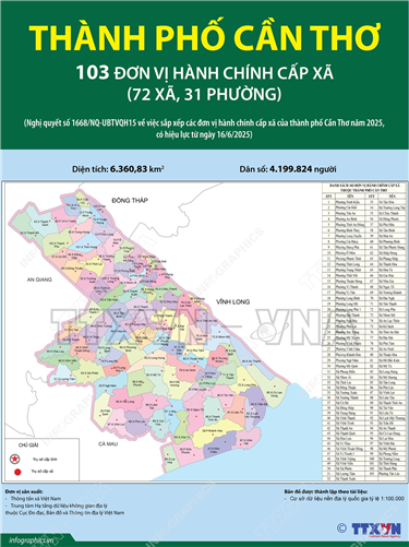 Tin cùng chuyên mục Thông tin chi tiết về 75 xã ở Hà Nội23/06/2025 15:05Hà Nội (TTXVN 20/6) Theo Nghị quyết số 1656/NQ-UBTVQH15 ngày 16/6/2025 của Ủy ban Thường vụ Quốc hội, sau khi sắp xếp, thành phố Hà Nội có 126 đơn vị hành chính cấp xã, gồm 51 phường và 75 xã. Thông tin chi tiết về 51 phường ở Hà Nội23/06/2025 15:04Hà Nội (TTXVN 20/6) Theo Nghị quyết số 1656/NQ-UBTVQH15 ngày 16/6/2025 của Ủy ban Thường vụ Quốc hội, sau khi sắp xếp, thành phố Hà Nội có 126 đơn vị hành chính cấp xã, gồm 51 phường và 75 xã. 102 đơn vị hành chính cấp xã của tỉnh Đắk Lắk năm 202523/06/2025 15:03Hà Nội (TTXVN 20/6) Ngày 16/6/2025, thay mặt Ủy ban Thường vụ Quốc hội, Chủ tịch Quốc hội Trần Thanh Mẫn ký Nghị quyết số 1660/NQ-UBTVQH15 về việc sắp xếp các đơn vị hành chính cấp xã của tỉnh Đắk Lắk năm 2025. Nghị quyết có hiệu lực từ 16/6/2025. Theo đó, sau khi sắp xếp,... 45 đơn vị hành chính cấp xã của tỉnh Điện Biên năm 202523/06/2025 15:03Hà Nội (TTXVN 20/6) Ngày 16/6/2025, thay mặt Ủy ban Thường vụ Quốc hội, Chủ tịch Quốc hội Trần Thanh Mẫn ký Nghị quyết số 1661/NQ-UBTVQH15 về việc sắp xếp các đơn vị hành chính cấp xã của tỉnh Điện Biên năm 2025. Nghị quyết có hiệu lực từ 16/6/2025. Theo đó, sau khi sắp... 102 đơn vị hành chính cấp xã của tỉnh An Giang năm 202523/06/2025 15:02Hà Nội (TTXVN 20/6) Ngày 16/6/2025, thay mặt Ủy ban Thường vụ Quốc hội, Chủ tịch Quốc hội Trần Thanh Mẫn ký Nghị quyết số 1654/NQ-UBTVQH15 về việc sắp xếp các đơn vị hành chính cấp xã của tỉnh An Giang năm 2025. Nghị quyết có hiệu lực từ 16/6/2025. Theo đó, sau khi sắp xếp,... 103 đơn vị hành chính cấp xã của thành phố Cần Thơ năm 202523/06/2025 15:00Hà Nội (TTXVN 20/6) Ngày 16/6/2025, thay mặt Ủy ban Thường vụ Quốc hội, Chủ tịch Quốc hội Trần Thanh Mẫn ký Nghị quyết số 1668/NQ-UBTVQH15 về việc sắp xếp các đơn vị hành chính cấp xã của thành phố Cần Thơ năm 2025. Nghị quyết có hiệu lực từ 16/6/2025. Theo đó, sau khi sắp...