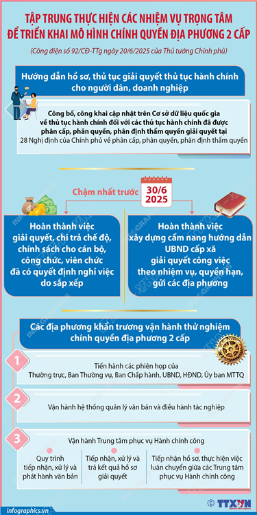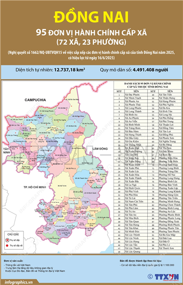 Tin cùng chuyên mục 99 đơn vị hành chính cấp xã của tỉnh Lào Cai năm 202523/06/2025 15:11Hà Nội (TTXVN 22/6) Ngày 16/6/2025, thay mặt Ủy ban Thường vụ Quốc hội, Chủ tịch Quốc hội Trần Thanh Mẫn ký Nghị quyết số 1673/NQ-UBTVQH15 về việc sắp xếp các đơn vị hành chính cấp xã của tỉnh Lào Cai năm 2025. Nghị quyết có hiệu lực từ 16/6/2025. Theo đó, sau khi sắp... 124 đơn vị hành chính cấp xã của tỉnh Lâm Đồng năm 202523/06/2025 15:11Hà Nội (TTXVN 22/6) Ngày 16/6/2025, thay mặt Ủy ban Thường vụ Quốc hội, Chủ tịch Quốc hội Trần Thanh Mẫn ký Nghị quyết số 1671/NQ-UBTVQH15 về việc sắp xếp các đơn vị hành chính cấp xã của tỉnh Lâm Đồng năm 2025. Nghị quyết có hiệu lực từ 16/6/2025. Theo đó, sau khi sắp... 135 đơn vị hành chính cấp xã của tỉnh Gia Lai năm 202523/06/2025 15:10Hà Nội (TTXVN 21/6) Ngày 16/6/2025, thay mặt Ủy ban Thường vụ Quốc hội, Chủ tịch Quốc hội Trần Thanh Mẫn ký Nghị quyết số 1664/NQ-UBTVQH15 về việc sắp xếp các đơn vị hành chính cấp xã của tỉnh Gia Lai năm 2025. Nghị quyết có hiệu lực từ 16/6/2025. Theo đó, sau khi sắp xếp,... 102 đơn vị hành chính cấp xã của tỉnh Đồng Tháp năm 202523/06/2025 15:09Hà Nội (TTXVN 21/6) Ngày 16/6/2025, thay mặt Ủy ban Thường vụ Quốc hội, Chủ tịch Quốc hội Trần Thanh Mẫn ký Nghị quyết số 1663/NQ-UBTVQH15 về việc sắp xếp các đơn vị hành chính cấp xã của tỉnh Đồng Tháp năm 2025. Nghị quyết có hiệu lực từ 16/6/2025. Theo đó, sau khi sắp... 95 đơn vị hành chính cấp xã của tỉnh Đồng Nai năm 202523/06/2025 15:0895 đơn vị hành chính cấp xã của tỉnh Đồng Nai năm 2025 Hà Nội (TTXVN 21/6) Ngày 16/6/2025, thay mặt Ủy ban Thường vụ Quốc hội, Chủ tịch Quốc hội Trần Thanh Mẫn ký Nghị quyết số 1662/NQ-UBTVQH15 về việc sắp xếp các đơn vị hành chính cấp xã của tỉnh Đồng Nai năm 2025. Nghị quyết... Tập trung thực hiện các nhiệm vụ trọng tâm để triển khai mô hình chính quyền địa phương 2 cấp23/06/2025 15:07Hà Nội (TTXVN 21/6) Thủ tướng Chính phủ Phạm Minh Chính đã ký Công điện số 92/CĐ-TTg ngày 20/6/2025 yêu cầu các bộ ngành, địa phương tập trung thực hiện các nhiệm vụ trọng tâm để triển khai mô hình chính quyền địa phương 2 cấp từ ngày...