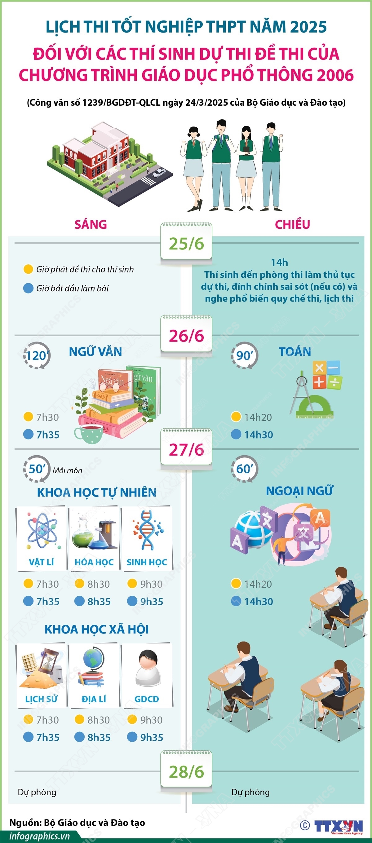 Lịch thi tốt nghiệp THPT năm 2025 đối với các thí sinh dự thi đề thi của chương trình GDPT 2006