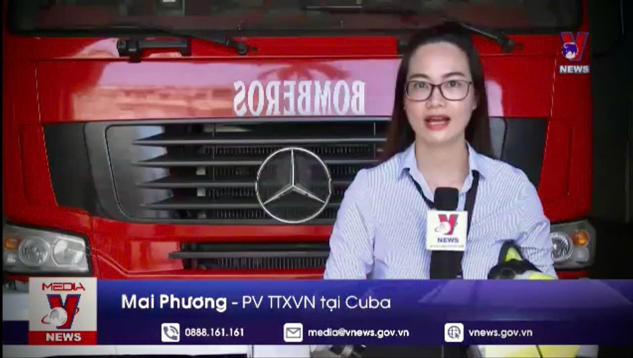 | Phóng viên CQTT tại La Habana Mai Phương đưa tin kỷ niệm Chiến thắng Điện Biên Phủ tại Cuba, tháng 5/2024 |