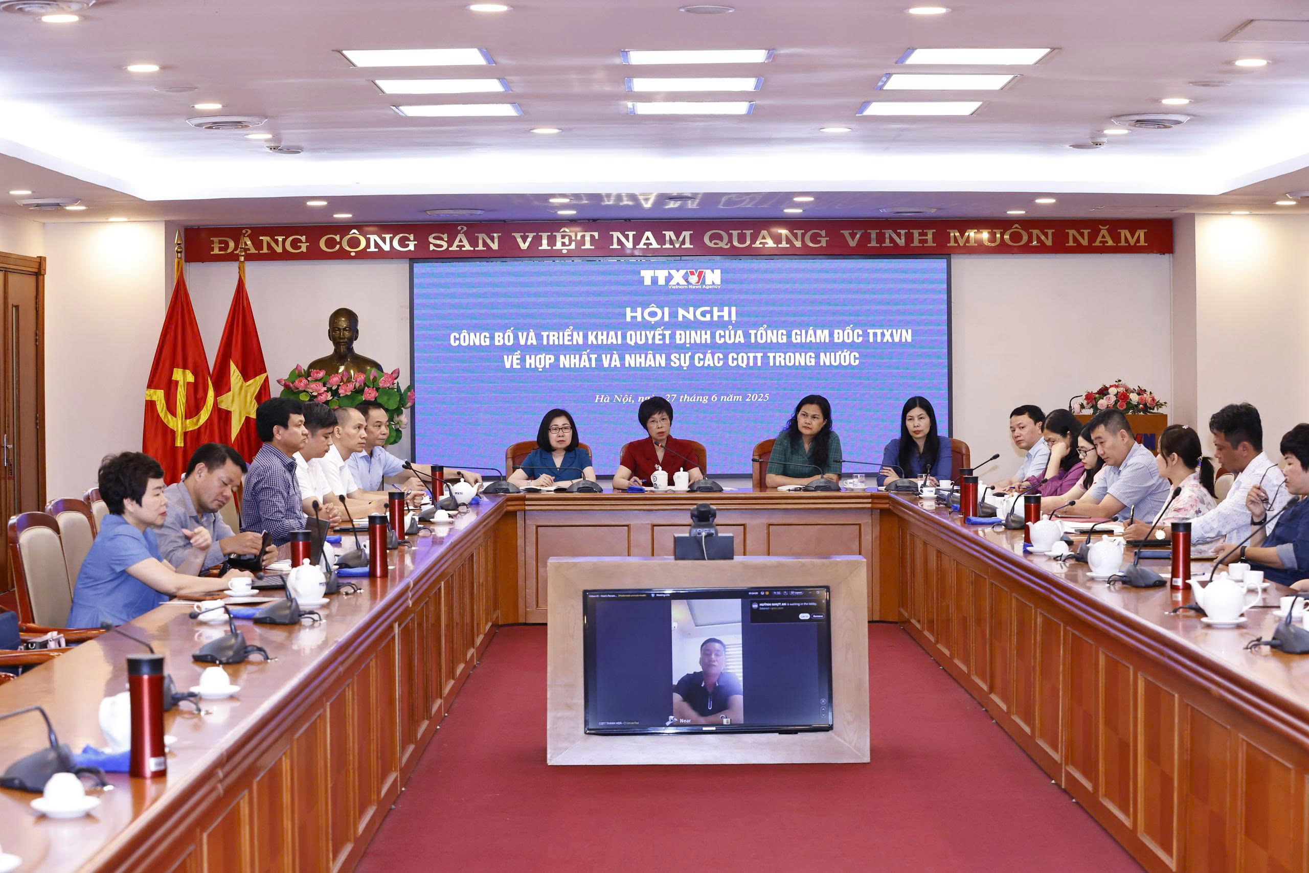 Trưởng ban Tổ chức - Cán bộ Đỗ Mạnh Chiến đã công bố các quyết định về sắp xếp các CQTT trong nước. Theo đó, từ ngày 1/7/2025, TTXVN có 34 CQTT tại 34 tỉnh, thành phố trong cả nước, gồm 18 CQTT ở khu vực phía Bắc, 8 CQTT ở khu vực miền Trung - Tây Nguyên và 8 CQTT khu vực phía Nam. Cụ thể như sau: