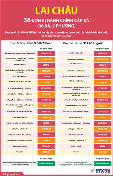 Tin cùng chuyên mục Phân quyền, phân cấp trong lĩnh vực quản lý nhà nước của Bộ Tư pháp (Phần 1)30/06/2025 14:12Hà Nội (TTXVN 28/6) Theo Nghị định số 112/2025/NĐ-CP ngày 29/5/2025 và Nghị định số 121/2025/NĐ-CP ngày 11/6/2025 của Chính phủ, thực hiện phân cấp, phân quyền trong lĩnh vực quản lý nhà nước của Bộ Tư pháp: Đấu giá tài sản; trọng tài thương mại; quản... Kỳ họp thứ 9, Quốc hội khóa XV: Dấu mốc quan trọng trong lịch sử lập Hiến, lập pháp30/06/2025 14:09Hà Nội (TTXVN 27/6) Sau 35 ngày làm việc, với tinh thần đổi mới, trách nhiệm và quyết tâm cao, trên cơ sở chuẩn bị khẩn trương, kỹ lưỡng và sắp xếp chương trình khoa học, hiệu quả, Kỳ họp thứ 9, Quốc hội khóa XV đã hoàn thành toàn bộ nội dung chương... Từ năm học 2025-2026: Tất cả trẻ em, học sinh trường công lập, dân lập được miễn, hỗ trợ học phí30/06/2025 14:08Hà Nội (TTXVN 27/6) Chiều 26/6/2025, tại Kỳ họp thứ 9, Quốc hội khóa XV đã biểu quyết thông qua Nghị quyết về miễn, hỗ trợ học phí đối với trẻ em mầm non, học sinh phổ thông, người học chương trình giáo dục phổ thông trong cơ sở giáo dục thuộc hệ thống giáo dục quốc... Thông tin chi tiết sắp xếp các đơn vị hành chính cấp xã của tỉnh Bắc Ninh30/06/2025 14:07Hà Nội (TTXVN 27/6) Theo Nghị quyết số 1658/NQ-UBTVQH15 ngày 16/6/2025 của Ủy ban Thường vụ Quốc hội, sau khi sắp xếp, tỉnh Bắc Ninh có 99 đơn vị hành chính cấp xã, gồm 66 xã và 33 phường; trong đó có 65 xã, 33 phường hình thành sau sắp xếp quy... Thông tin chi tiết sắp xếp các đơn vị hành chính cấp xã của tỉnh Gia Lai30/06/2025 14:04Hà Nội (TTXVN 27/6) Theo Nghị quyết số 1664/NQ-UBTVQH15 ngày 16/6/2025 của Ủy ban Thường vụ Quốc hội, sau khi sắp xếp, tỉnh Gia Lai có 135 đơn vị hành chính cấp xã, gồm 110 xã và 25 phường; trong đó có 101 xã, 25 phường hình thành sau sắp xếp quy định... Thông tin chi tiết sắp xếp các đơn vị hành chính cấp xã của tỉnh Lai Châu30/06/2025 14:03Hà Nội (TTXVN 27/6) Theo Nghị quyết số 1670/NQ-UBTVQH15 ngày 16/6/2025 của Ủy ban Thường vụ Quốc hội, sau khi sắp xếp, tỉnh Lai Châu có 38 đơn vị hành chính cấp xã, gồm 36 xã và 2 phường.