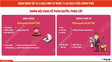 Tin cùng chuyên mục Từ 1/7/2025 - 31/12/2026: Tiếp tục giảm 2% thuế suất thuế giá trị gia tăng04/07/2025 10:17Hà Nội (TTXVN 1/7) Chủ tịch Quốc hội Trần Thanh Mẫn đã ký ban hành Nghị quyết số 204/2025/QH15 của Quốc hội về giảm thuế giá trị gia tăng. Theo đó, Quốc hội quyết nghị giảm 2% thuế suất thuế giá trị gia tăng, áp dụng đối với các nhóm hàng hóa, dịch vụ quy định... Nghị định số 121/2025/NĐ-CP ngày 11/6/2025: Người dân có quyền đến bất cứ UBND cấp xã nào để yêu cầu được giải quyết các TTHC (Phần 2 và hết)30/06/2025 14:20Hà Nội (TTXVN 29/6) Theo Nghị định số 121/2025/NĐ-CP ngày 11/6/2025 quy định về phân định thẩm quyền của chính quyền địa phương 2 cấp trong lĩnh vực quản lý nhà nước của Bộ Tư pháp, từ 1/7/2025, việc thực hiện thủ tục hành chính theo hướng “phi địa giới hành chính”, tức... Nghị định số 121/2025/NĐ-CP ngày 11/6/2025: Người dân có quyền đến bất cứ UBND cấp xã nào để yêu cầu được giải quyết các TTHC (Phần 1)30/06/2025 14:18Hà Nội (TTXVN 29/6) Theo Nghị định số 121/2025/NĐ-CP ngày 11/6/2025 quy định về phân định thẩm quyền của chính quyền địa phương 2 cấp trong lĩnh vực quản lý nhà nước của Bộ Tư pháp, từ 1/7/2025, việc thực hiện thủ tục hành chính theo hướng “phi địa giới hành chính”, tức... Phân quyền, phân cấp trong lĩnh vực quản lý nhà nước của Bộ Tư pháp (Phần 4 và hết)30/06/2025 14:17Hà Nội (TTXVN 28/6) Theo Nghị định số 112/2025/NĐ-CP ngày 29/5/2025 và Nghị định số 121/2025/NĐ-CP ngày 11/6/2025 của Chính phủ, thực hiện phân cấp, phân quyền trong lĩnh vực quản lý nhà nước của Bộ Tư pháp: Đấu giá tài sản; trọng tài thương mại; quản... Phân quyền, phân cấp trong lĩnh vực quản lý nhà nước của Bộ Tư pháp (Phần 3)30/06/2025 14:15Hà Nội (TTXVN 28/6) Theo Nghị định số 112/2025/NĐ-CP ngày 29/5/2025 và Nghị định số 121/2025/NĐ-CP ngày 11/6/2025 của Chính phủ, thực hiện phân cấp, phân quyền trong lĩnh vực quản lý nhà nước của Bộ Tư pháp: Đấu giá tài sản; trọng tài thương mại; quản... Phân quyền, phân cấp trong lĩnh vực quản lý nhà nước của Bộ Tư pháp (Phần 2)30/06/2025 14:14Hà Nội (TTXVN 28/6) Theo Nghị định số 112/2025/NĐ-CP ngày 29/5/2025 và Nghị định số 121/2025/NĐ-CP ngày 11/6/2025 của Chính phủ, thực hiện phân cấp, phân quyền trong lĩnh vực quản lý nhà nước của Bộ Tư pháp: Đấu giá tài sản; trọng tài thương mại; quản...