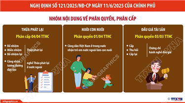 Tin cùng chuyên mục Thêm 4 nhóm đối tượng được nhà nước cấp BHYT miễn phí04/07/2025 10:18Hà Nội (TTXVN 1/7) Luật sửa đổi bổ sung một số điều của Luật Bảo hiểm y tế có hiệu lực từ ngày 1/7/2025 mở rộng 4 nhóm được ngân sách nhà nước chi trả tiền mua bảo hiểm y tế (BHYT). Như vậy, số lượng nhóm đối tượng được ngân sách nhà nước hỗ trợ 100% mức BHYT theo Luật... Từ 1/7/2025 - 31/12/2026: Tiếp tục giảm 2% thuế suất thuế giá trị gia tăng04/07/2025 10:17Hà Nội (TTXVN 1/7) Chủ tịch Quốc hội Trần Thanh Mẫn đã ký ban hành Nghị quyết số 204/2025/QH15 của Quốc hội về giảm thuế giá trị gia tăng. Theo đó, Quốc hội quyết nghị giảm 2% thuế suất thuế giá trị gia tăng, áp dụng đối với các nhóm hàng hóa, dịch vụ quy định... Nghị định số 121/2025/NĐ-CP ngày 11/6/2025: Người dân có quyền đến bất cứ UBND cấp xã nào để yêu cầu được giải quyết các TTHC (Phần 2 và hết)30/06/2025 14:20Hà Nội (TTXVN 29/6) Theo Nghị định số 121/2025/NĐ-CP ngày 11/6/2025 quy định về phân định thẩm quyền của chính quyền địa phương 2 cấp trong lĩnh vực quản lý nhà nước của Bộ Tư pháp, từ 1/7/2025, việc thực hiện thủ tục hành chính theo hướng “phi địa giới hành chính”, tức... Nghị định số 121/2025/NĐ-CP ngày 11/6/2025: Người dân có quyền đến bất cứ UBND cấp xã nào để yêu cầu được giải quyết các TTHC (Phần 1)30/06/2025 14:18Hà Nội (TTXVN 29/6) Theo Nghị định số 121/2025/NĐ-CP ngày 11/6/2025 quy định về phân định thẩm quyền của chính quyền địa phương 2 cấp trong lĩnh vực quản lý nhà nước của Bộ Tư pháp, từ 1/7/2025, việc thực hiện thủ tục hành chính theo hướng “phi địa giới hành chính”, tức... Phân quyền, phân cấp trong lĩnh vực quản lý nhà nước của Bộ Tư pháp (Phần 4 và hết)30/06/2025 14:17Hà Nội (TTXVN 28/6) Theo Nghị định số 112/2025/NĐ-CP ngày 29/5/2025 và Nghị định số 121/2025/NĐ-CP ngày 11/6/2025 của Chính phủ, thực hiện phân cấp, phân quyền trong lĩnh vực quản lý nhà nước của Bộ Tư pháp: Đấu giá tài sản; trọng tài thương mại; quản... Phân quyền, phân cấp trong lĩnh vực quản lý nhà nước của Bộ Tư pháp (Phần 3)30/06/2025 14:15Hà Nội (TTXVN 28/6) Theo Nghị định số 112/2025/NĐ-CP ngày 29/5/2025 và Nghị định số 121/2025/NĐ-CP ngày 11/6/2025 của Chính phủ, thực hiện phân cấp, phân quyền trong lĩnh vực quản lý nhà nước của Bộ Tư pháp: Đấu giá tài sản; trọng tài thương mại; quản...