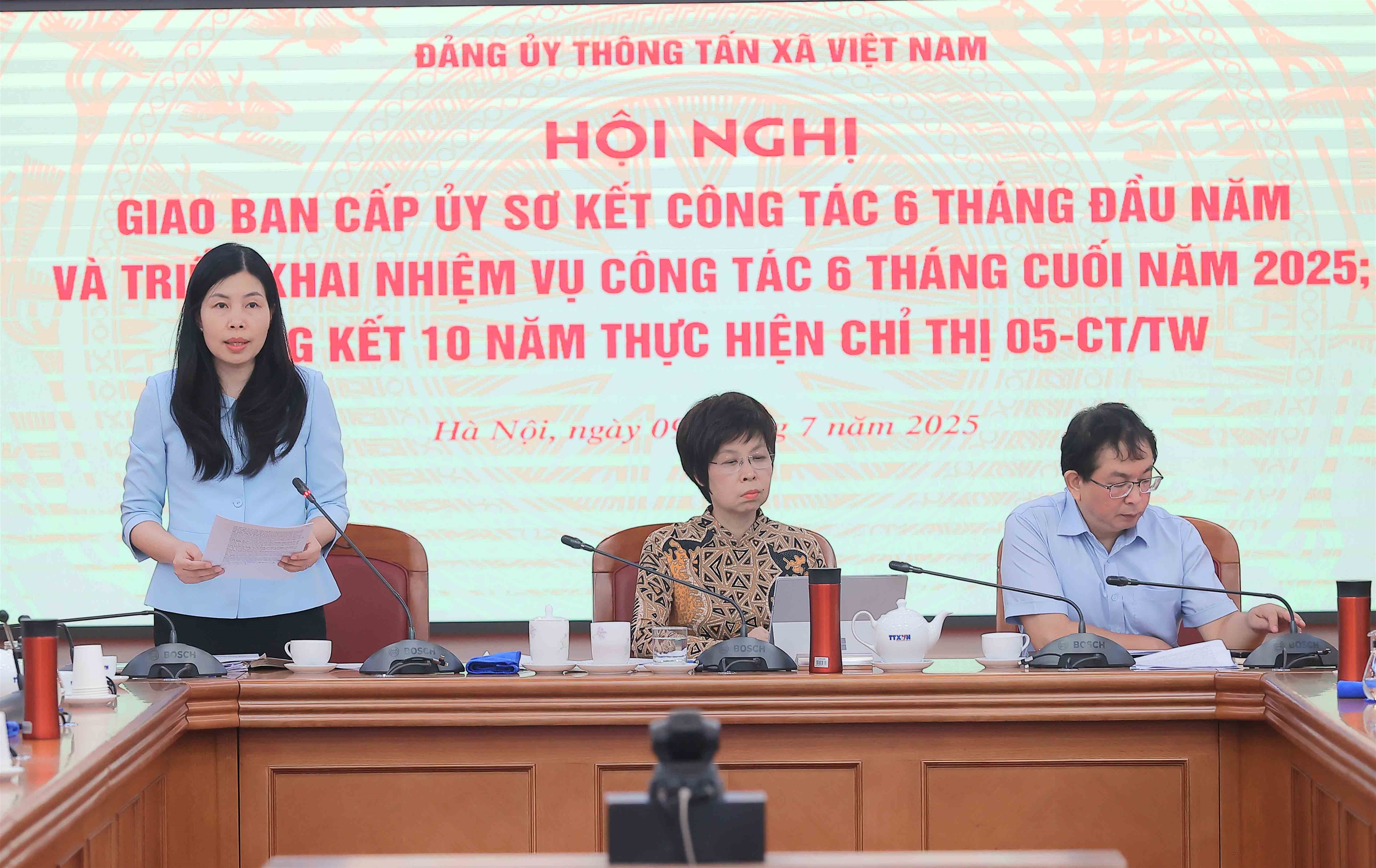 Phó bí thư Đảng ủy Chuyên trách Đỗ Thị Trang trình bày báo cáo tổng kết 10 năm thực hiện Chỉ thị 05-CT/TW, nêu rõ: Đảng ủy TTXVN đã ban hành các kế hoạch tổ chức thực hiện sâu rộng trong toàn Đảng bộ, đồng thời chỉ đạo các đảng bộ, chi bộ trực thuộc thực hiện kế hoạch học tập và làm theo tư tưởng, đạo đức, phong cách Hồ Chí Minh toàn khóa và hằng năm với nội dung cụ thể gắn với việc thực hiện nhiệm vụ chính trị của cơ quan thông tấn quốc gia, cơ quan truyền thông chủ lực đa phương tiện và vận dụng phù hợp với chức năng, nhiệm vụ, điều kiện cụ thể của đơn vị.