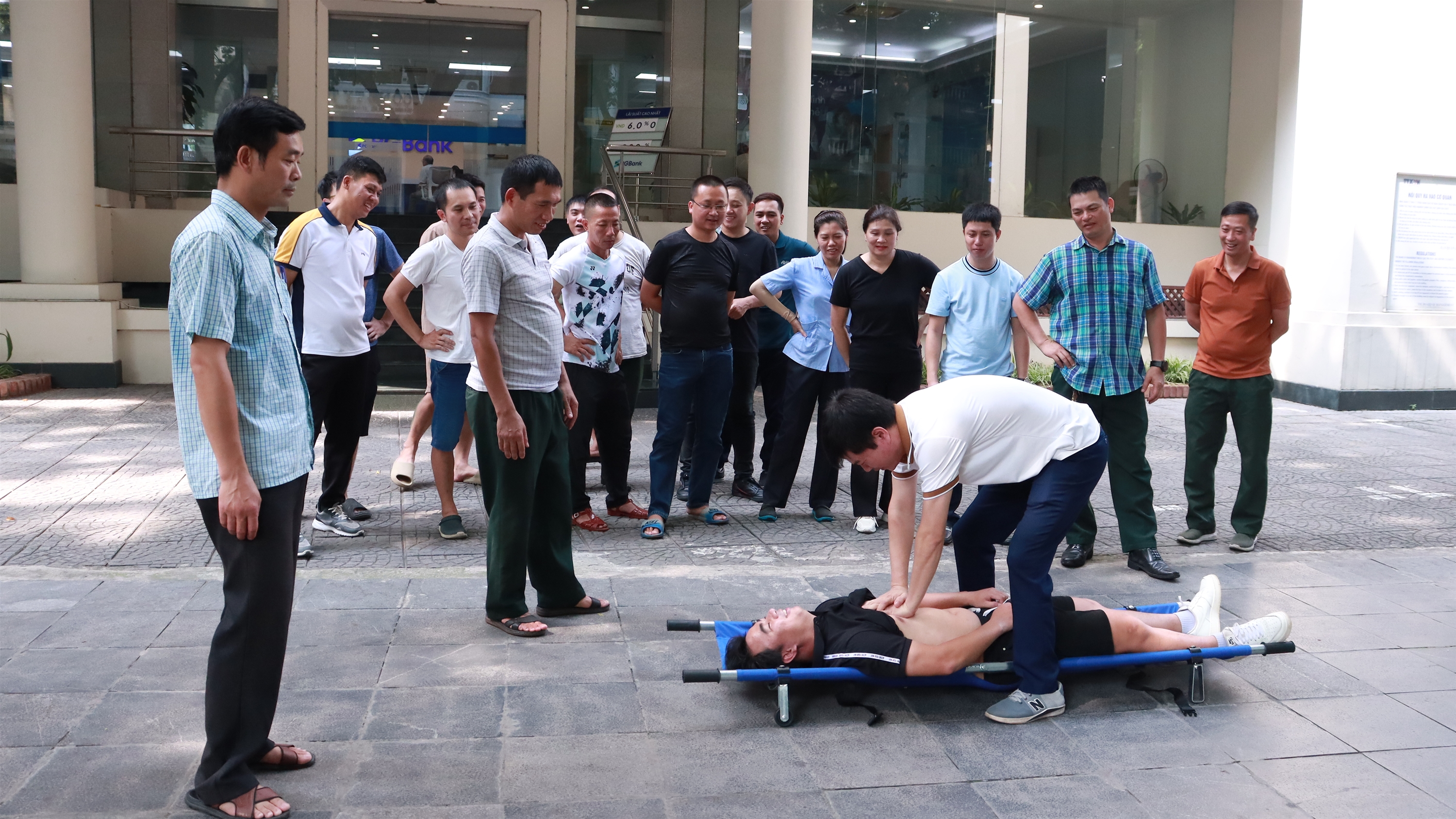 Sự kiện và kỷ niệmTin trong ngành Tập huấn phòng, chống lụt bão Thứ tư, 23/07/2025 09:17 Ngày 19/7, Trung tâm Hợp tác quốc tế Thông tấn - Thông tấn xã Việt Nam đã tổ chức tập huấn công tác phòng, chống lụt bão cho viên chức và người lao động của đơn vị. Giám đốc Trung tâm Hợp tác quốc tế Thông tấn Dương Đức Dũng phổ biến công tác phòng, chống lụt bão đến viên chức và người lao động của đơn vị, ngày 19/7 Tại buổi tập huấn, các thành viên Đội phòng chống lụt bão thuộc Trung tâm Hợp tác quốc tế Thông tấn đã hướng dẫn các viên chức và người lao động của đơn viên: cách ngắt cầu giao điện tại tầng hầm; cách khóa thang máy tại vị trí an toàn tránh nước tràn vào; các trường hợp và nguyên nhân bị điện giật khi có mưa, bão; cách phòng ngừa và cách sơ cứu khi bị điện giật; công tác tổ chức cứu thương khi có người bị thương… Đồng thời, hướng dẫn thực hành, xử lý tình huống khi có mưa bão, nước tràn vào tầng hầm tòa nhà 11 Trần Hưng Đạo với các biện pháp ngăn nước tràn như: đưa thang máy lên vị trí an toàn; ngắt các thiết bị điện tầng hầm; làm hàng rào khu vực tập kết phương tiện, tài sản; triển khai lực lượng bảo đảm an ninh, trật tự, an toàn các khu vực... Đội phòng, chống lụt bão thuộc Trung tâm Hợp tác quốc tế Thông tấn hướng dẫn cách sơ cứu khi bị điện giật, ngày 19/7 Buổi tập huấn được tổ chức nhằm cung cấp các kỹ năng cần thiết để xử lý các tình huống do mưa bão gây ra, đảm bảo an toàn về người và tài sản cho đơn vị và cơ quan./. Thực hành làm hàng rào ngăn nước tràn vào hầm tòa nhà 11 Trần Hưng Đạo, Hà Nội, ngày 19/7 Nội san Thông tấn