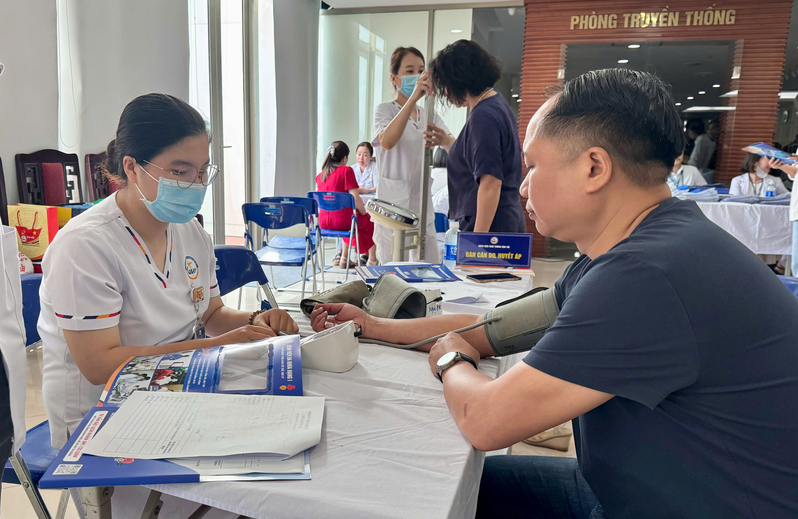 Tham gia khám sức khỏe, cán bộ, phóng viên, nhân viên được cân, đo huyết áp, xét nghiệm máu, nước tiểu, siêu âm ổ bụng tổng quát, chụp Xquang tim phổi. Lịch khám sức khỏe được chia cụ thể theo từng khung giờ để đảm bảo lịch làm việc của từng đơn vị.