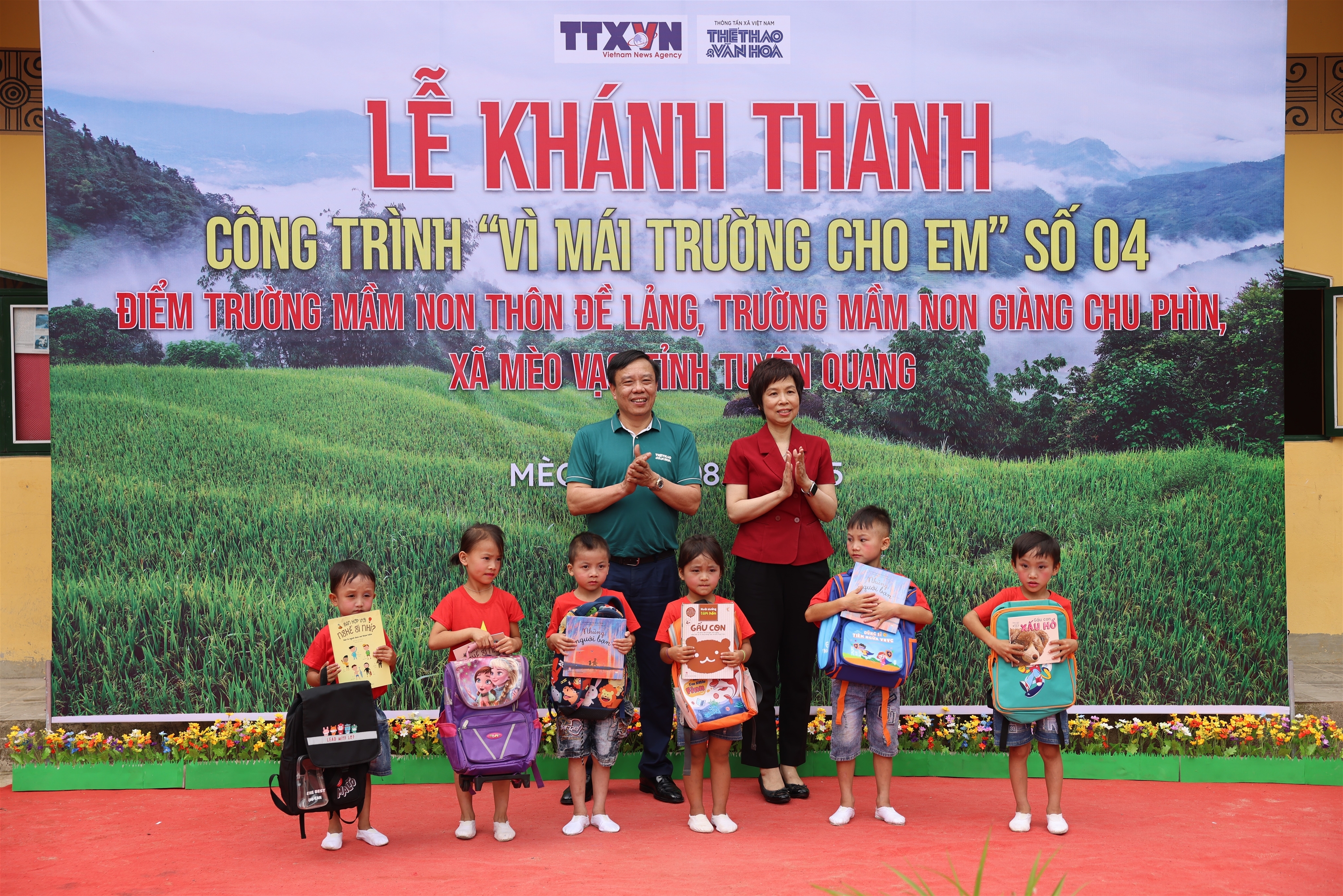 Chiều 8/8, tại thôn Đề Lảng, xã Mèo Vạc, tỉnh Tuyên Quang đã diễn ra Lễ khánh thành và bàn giao phòng học mới tại Điểm trường Mầm non thôn Đề Lảng, Trường mầm non Giàng Chu Phìn. Công trình được xây dựng từ chương trình thiện nguyện “Vì mái trường cho em” do Báo Thể thao và Văn hóa thuộc Thông tấn xã Việt Nam (TTXVN) khởi xướng, với sự chung tay đóng góp của nhiều tấm lòng hảo tâm trên khắp cả nước.