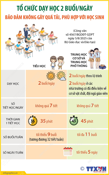 Phổ biến giáo dục Pháp luậtThông tin đồ họa Kỳ thi tốt nghiệp Trung học Phổ thông năm 2026 dự kiến tổ chức sớm hơn, ngày 11 và 12/6/2026 Thứ ba, 12/08/2025 09:06 Hà Nội (TTXVN 12/8) Bộ Giáo dục và Đào tạo vừa ban hành Quyết định 2269/QĐ-BGDĐT về Khung kế hoạch thời gian năm học 2025-2026 đối với giáo dục mầm non, giáo dục phổ thông và giáo dục thường xuyên áp dụng trong toàn quốc. Theo đó, các trường tựu trường sớm nhất trước một tuần so với ngày tổ chức khai giảng. Riêng đối với lớp 1, lớp 9 và lớp 12, tựu trường sớm nhất trước hai tuần so với ngày tổ chức khai giảng. Lễ khai giảng diễn ra vào ngày 5/9/2025. Kỳ thi tốt nghiệp Trung học Phổ thông năm 2026 dự kiến diễn ra trong ngày 11 và 12/6/2026. Việc dự kiến tổ chức sớm hơn kỳ thi phù hợp với khung kế hoạch năm học, học sinh vẫn có thời gian để ôn thi.