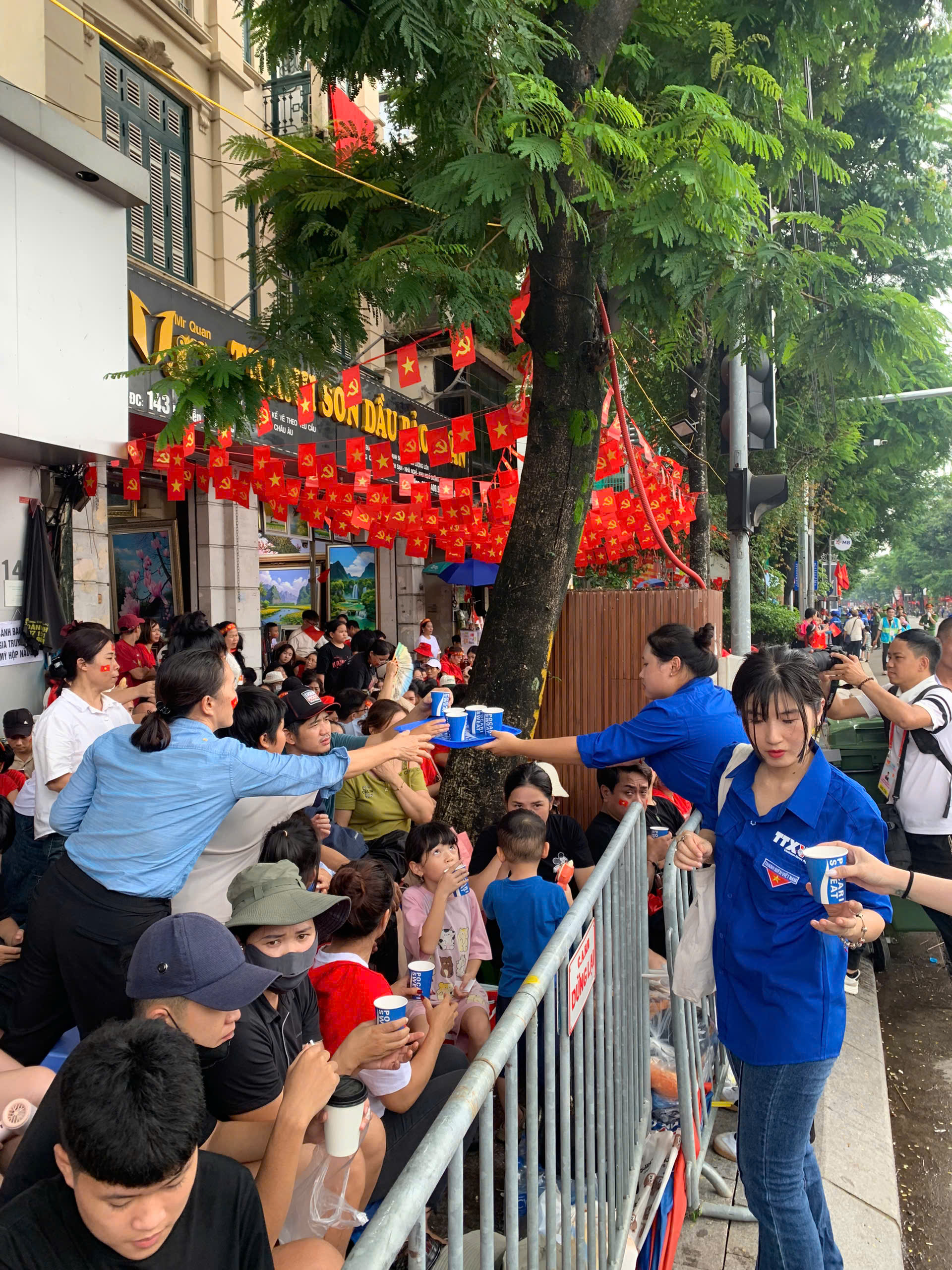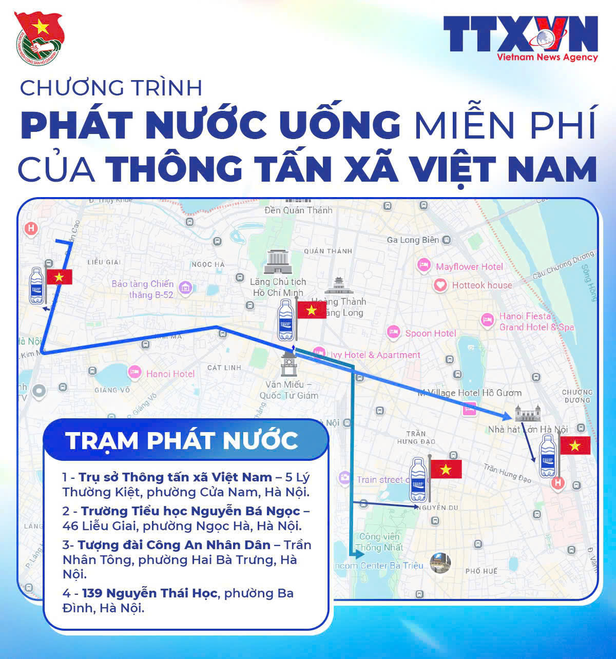 Sự kiện và kỷ niệmTin trong ngành Tiếp nước cho người dân xem hợp luyện và sơ duyệt diễu binh mừng Quốc khánh Thứ tư, 27/08/2025 15:31 Nhằm lan tỏa tinh thần sẻ chia và tiếp sức cho người dân tham gia các hoạt động nhân Lễ diễu binh, diễu hành kỷ niệm 80 năm Cách mạng Tháng Tám thành công (19/8/1945-19/8/2025) và Quốc khánh nước Cộng hòa xã hội chủ nghĩa Việt Nam (2/9/1945-2/9/2025), Đoàn thanh niên Thông tấn xã Việt Nam (TTXVN) đã tổ chức chương trình “Hỗ trợ và tiếp nước miễn phí cho người dân, cựu chiến binh tham dự các buổi hợp luyện và tổng duyệt diễu binh”. Chương trình “Hỗ trợ và tiếp nước miễn phí cho người dân, cựu chiến binh tham dự các buổi hợp luyện và tổng duyệt diễu binh” do đoàn viên thanh niên TTXVN thực hiện Chương trình được tổ chức trong các ngày 27 và 30/8 tại 4 địa điểm: Trung tâm Thông tấn quốc gia Hà Nội, Trường tiểu học Nguyễn Bá Ngọc, Tượng đài Công an nhân dân và Hội Người mù Việt Nam. Sau đây là một số hình ảnh của chương trình: Nội san Thông tấn