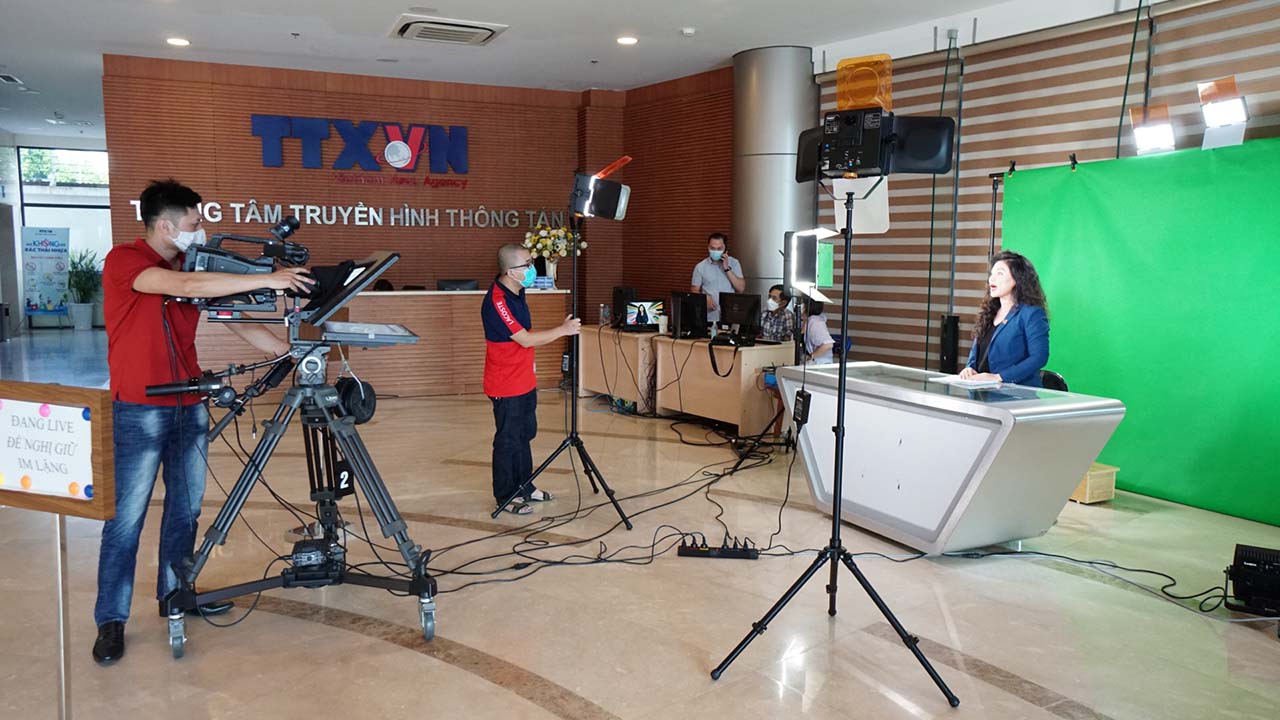 Đặc biệt, để ứng phó với cao điểm dịch COVID-19 lần này, lần đầu tiên, Trung tâm Truyền hình Thông tấn phối hợp với Văn phòng TTXVN thiết lập một trường quay dã chiến ngay tại sảnh tầng 1 của tòa nhà với đầy đủ nhân lực, máy móc, trang thiết bị, đảm bảo phục vụ công tác ghi hình các chuyên mục, phỏng vấn, talk show... Qua triển khai cho thấy, đây là quyết định cần thiết, kịp thời của VNews nhằm đảm bảo duy trì sản xuất các chuyên mục, nhất là của các đơn vị phối hợp, không bị gián đoạn, vỡ kế hoạch; đồng thời bảo vệ an toàn vùng lõi, an toàn sóng. Trong thời gian này, toàn bộ khách mời được thực hiện ghi hình, phỏng vấn ngay tại khu vực trường quay dã chiến. Toàn Trung tâm thực hiện quy định 5K, giữ khoảng cách tối thiểu 2m khi giao tiếp.