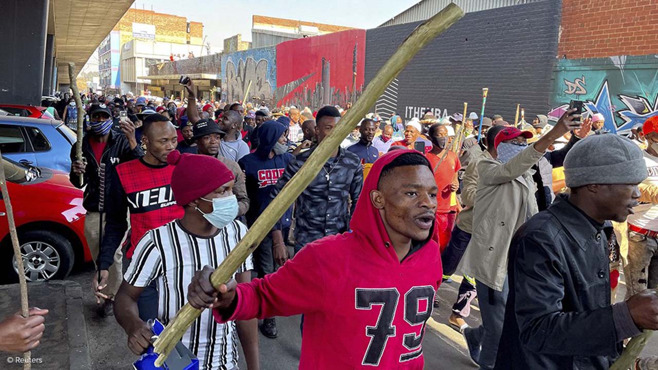 | Những người biểu tình cầm gậy diễu hành qua các đường phố tại trung tâm kinh tế tài chính của đất nước - thành phố Johannesburg, cách thủ đô hành chính Pretoria 60km. Ảnh: Reuters |