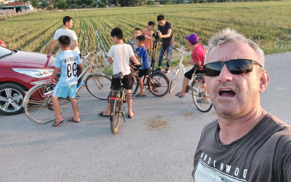 | Hiệu đính viên báo Việt Nam News Paul Kennedy trong chuyến ghi hình cho bộ phim tại huyện Yên Thành, Nghệ An |