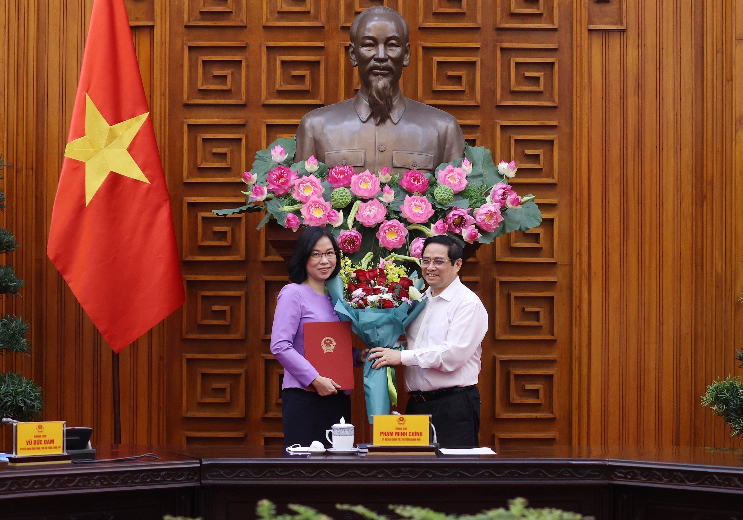 Thay mặt Chính phủ, Thủ tướng Chính phủ Phạm Minh Chính chúc mừng đồng chí Vũ Việt Trang trên cương vị mới, đồng thời cho biết, đồng chí là nữ Tổng giám đốc đầu tiên của TTXVN. Việc đồng chí Vũ Việt Trang được bổ nhiệm giữ chức vụ Tổng giám đốc TTXVN đánh dấu quá trình phấn đấu, trưởng thành của cá nhân đồng chí và đổi mới trong công tác cán bộ của TTXVN; tin tưởng đồng chí Vũ Việt Trang sẽ tiếp tục hoàn thành xuất sắc nhiệm vụ được giao.