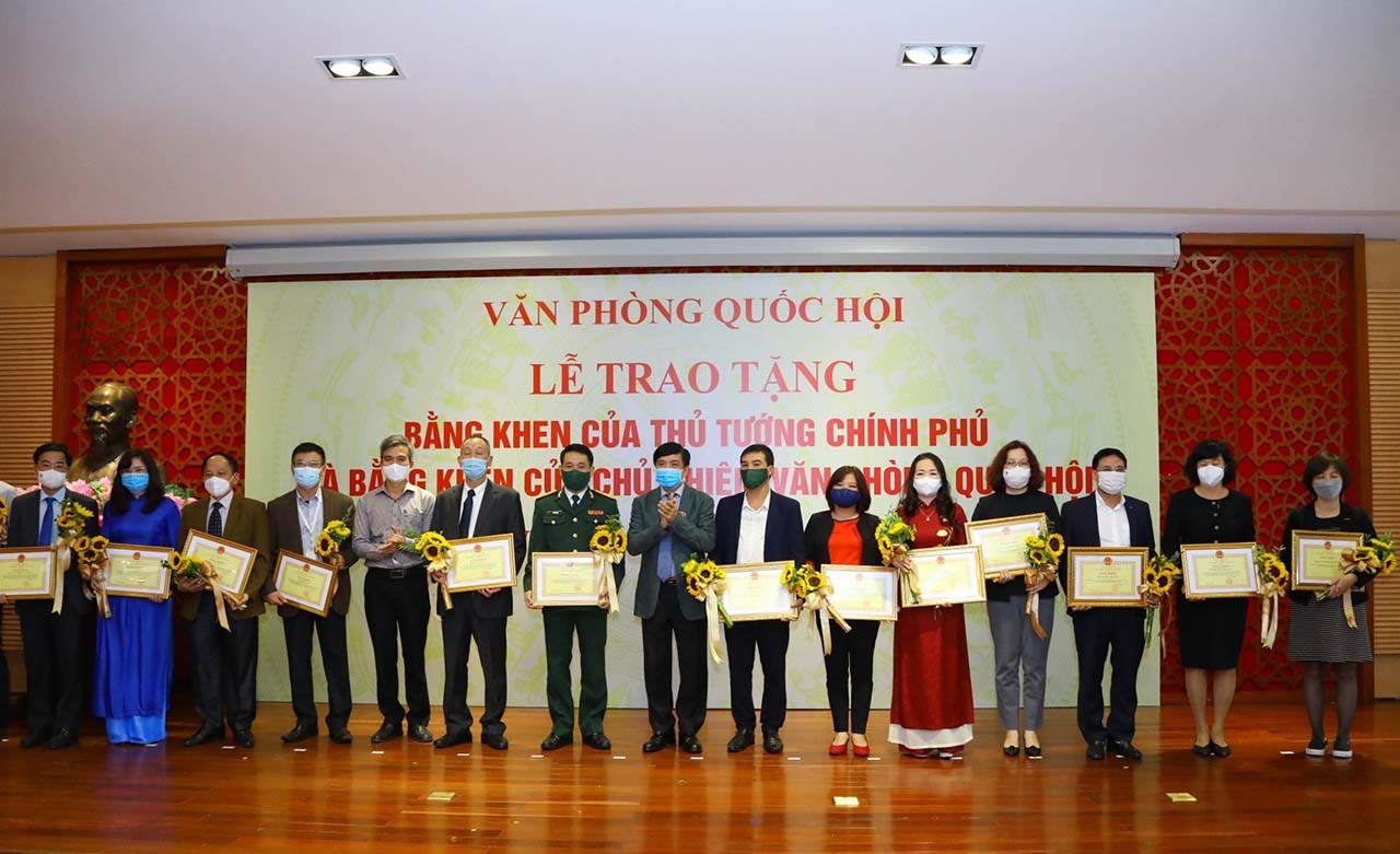 Biểu dương và chúc mừng các cá nhân tập thể vinh dự nhận được Bằng khen của Thủ tướng Chính phủ và Bằng khen của Chủ nhiệm Văn phòng Quốc hội, Ủy viên Bộ Chính trị, Phó Chủ tịch Thường trực Quốc hội Trần Thanh Mẫn cho biết, kỳ bầu cử đại biểu Quốc hội khóa XV và đại biểu HĐND các cấp đã diễn ra thành công tốt đẹp, vận dụng linh hoạt, sáng tạo, chủ động, kịp thời triển khai các nhiệm vụ đề ra. Đây là thành công của toàn Đảng, toàn quân, toàn dân, trong đó có vai trò tham mưu, phục vụ việc định hướng; tổ chức tuyên truyền của các tập thể, cá nhân; đồng thời bày tỏ tin tưởng các tập thể, cá nhân sẽ tiếp tục phát huy, hoàn thành tốt nhiệm vụ, trọng trách được giao trong thời gian tới. Các phong trào thi đua tiếp tục được phát động để các tập thể, cá nhân nỗ lực đóng góp nhiều hơn nữa trong việc thực hiện Chương trình hành động của Đảng đoàn Quốc hội thực hiện Nghị quyết Đại hội Đảng toàn quốc lần thứ XIII./.