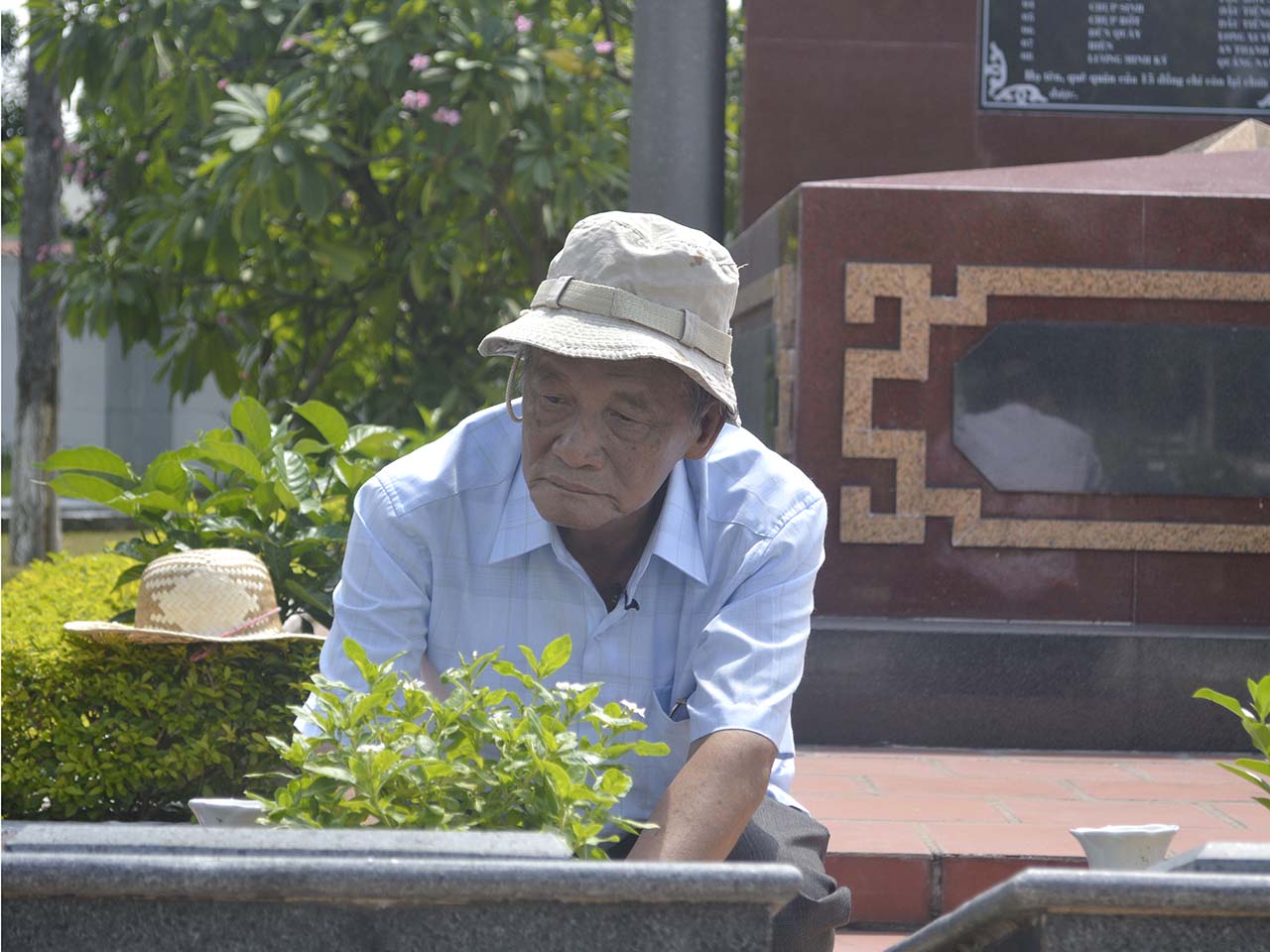 | Nhà báo Nguyễn Trung Hiếu đến thăm các đồng đội, đồng nghiệp phân xã Nam Tây Nguyên đang an nghỉ tại Nghĩa trang liệt sỹ tỉnh Bình Dương, ngày 7/3/2014 |