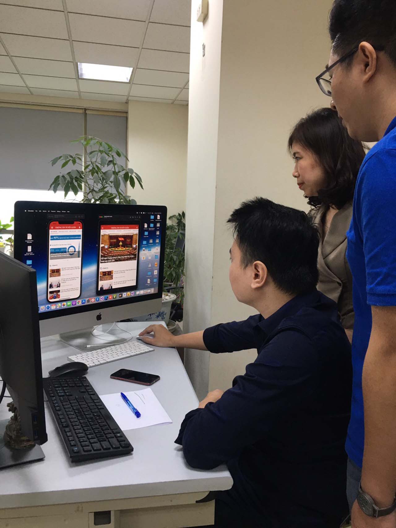 | Nhóm kỹ sư, chuyên viên trao đổi về phương thức vận hành ứng dụng Thông tin Tuyên giáo |
