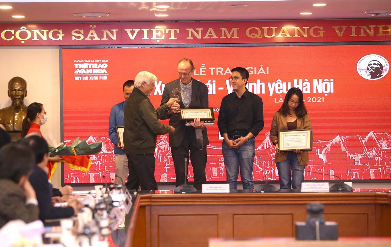 Nhà sử học Dương Trung Quốc trao giải “Tác phẩm - Vì tình yêu Hà Nội” cho nhiếp ảnh gia Thomas Billhardt