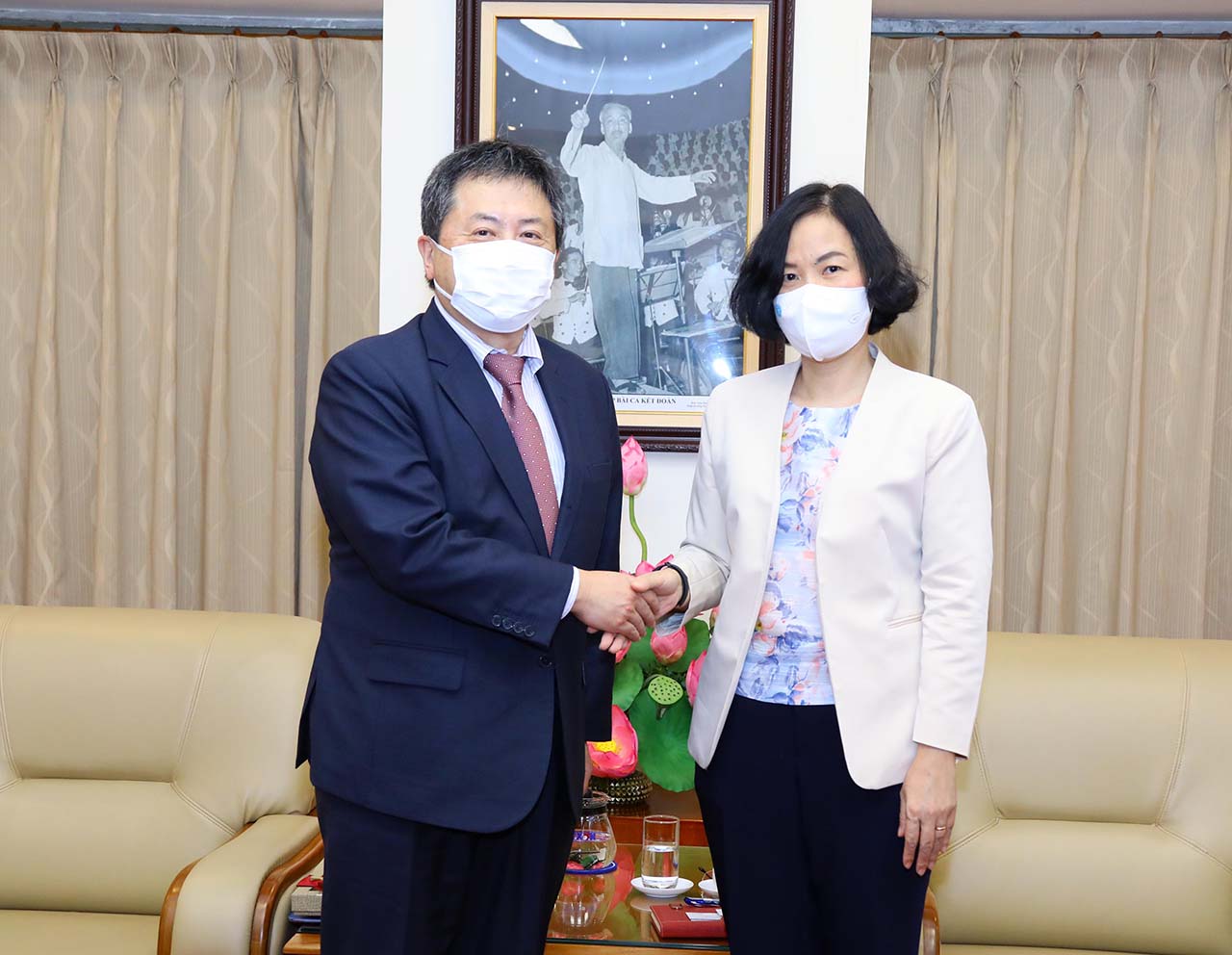 | Tổng giám đốc TTXVN Vũ Việt Trang tiếp Trưởng đại diện Văn phòng JICA Việt Nam Shimizu Akira, ngày 11/11/2021 |
