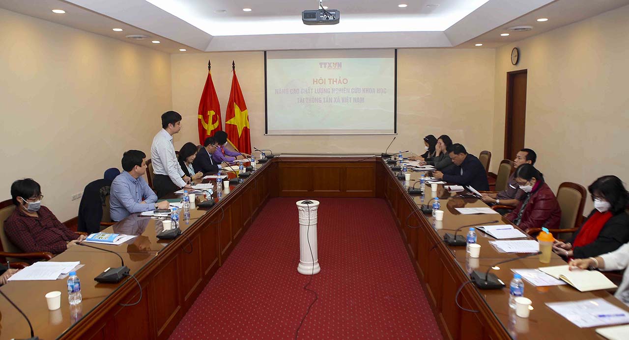 Ngày 25/11, Hội đồng Nghiên cứu phát triển Thông tấn xã Việt Nam (TTXVN) đã tổ chức hội thảo trực tuyến “Nâng cao chất lượng công tác nghiên cứu khoa học tại TTXVN”, với sự tham dự của các thành viên Hội đồng, các chủ nhiệm, thư ký khoa học và thư ký hành chính của các đề tài nghiên cứu khoa học từ năm 2014 đến nay; đại diện Vụ kế hoạch - Tài chính, Bộ Khoa học và Công nghệ; một số nhà khoa học, chuyên gia nghiên cứu. Cùng dự có Phó tổng giám đốc TTXVN Nguyễn Tuấn Hùng.