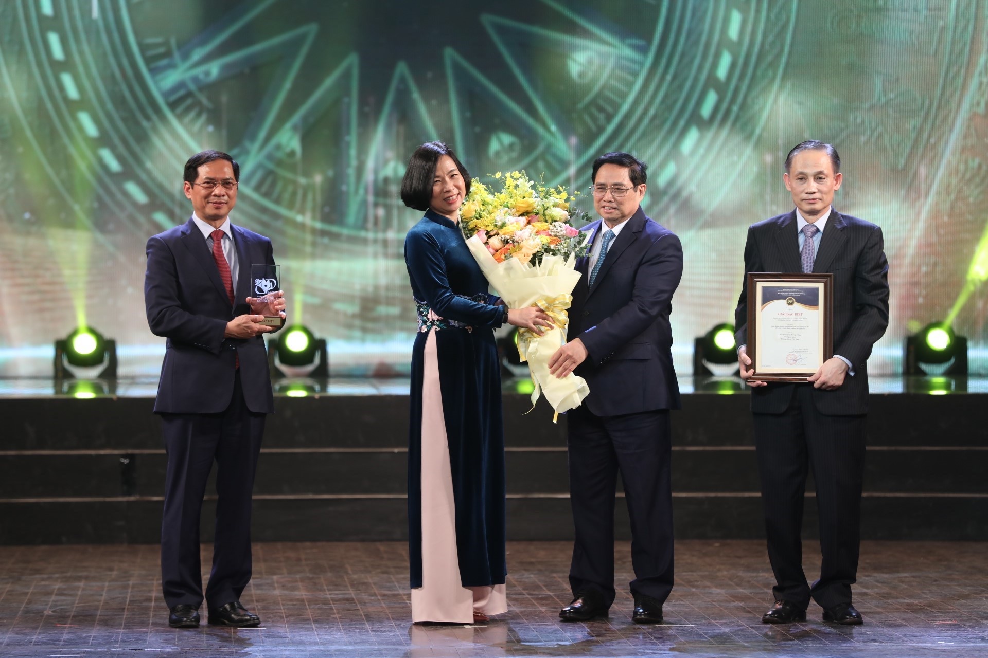 | Thủ tướng Chính phủ Phạm Minh Chính trao giải Đặc biệt cho Tổng giám đốc TTXVN Vũ Việt Trang - đại diện nhóm tác giả có Sáng kiến ý tưởng, sản phẩm có giá trị thông tin đối ngoại |