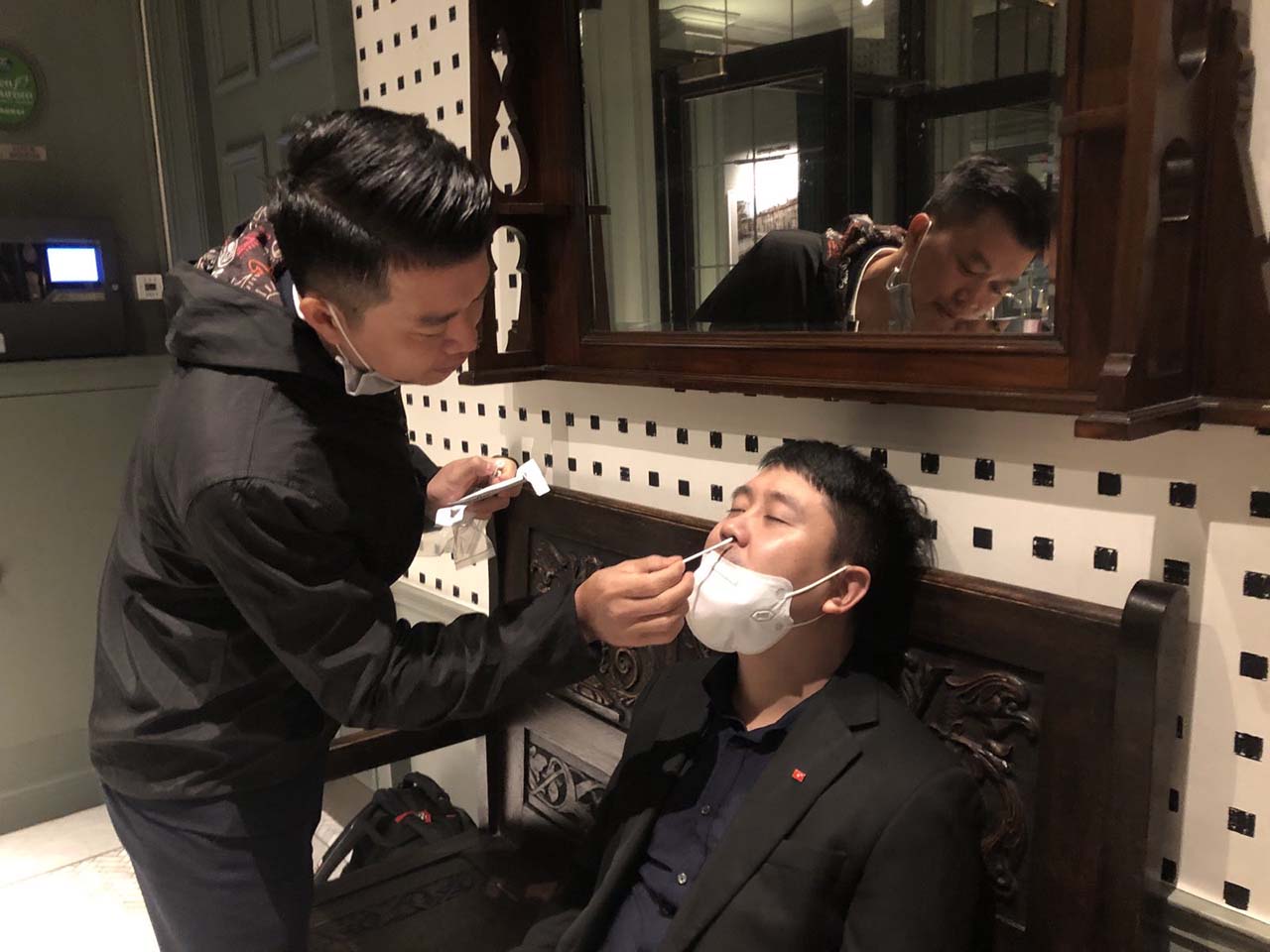 | Các phóng viên tự lấy mẫu cho nhau và kiểm tra hằng ngày bằng bộ Kit xét nghiệm nhanh SARS-CoV-2 |